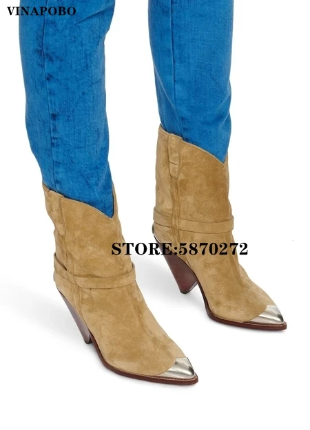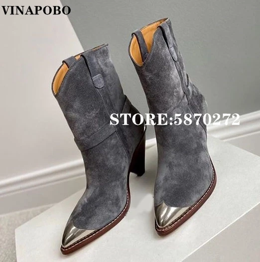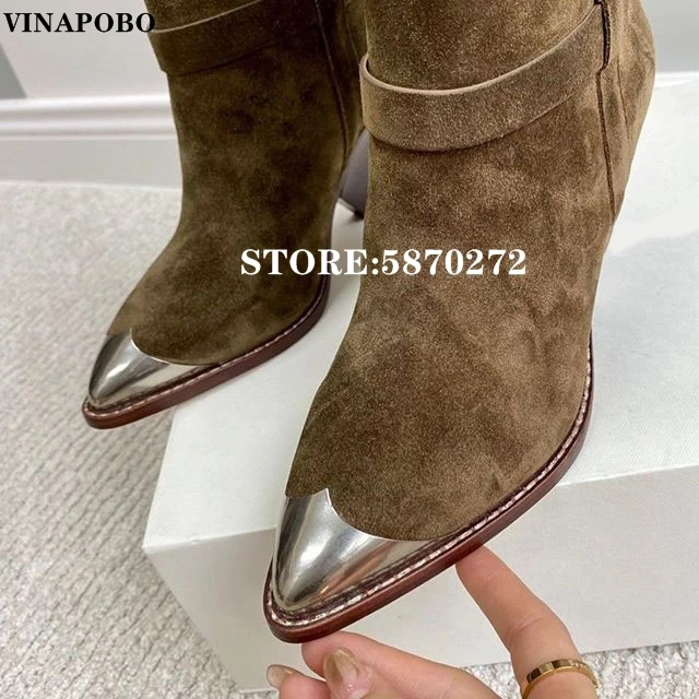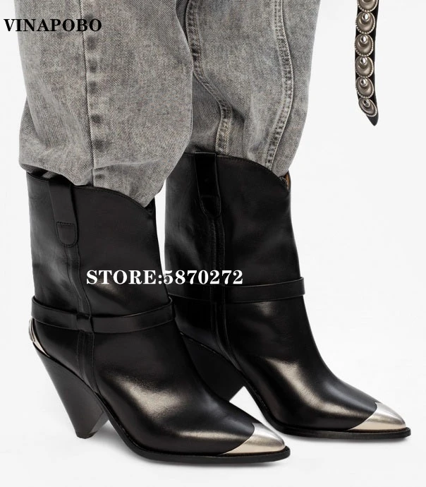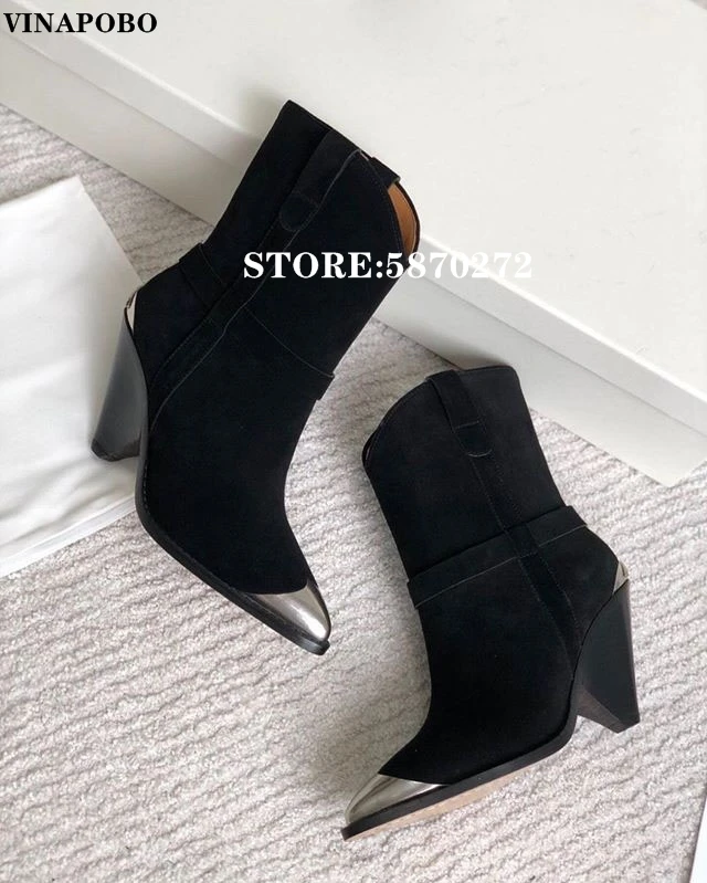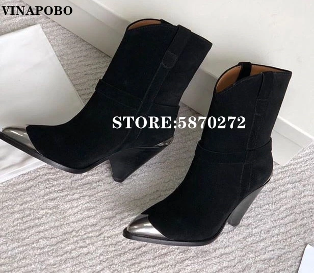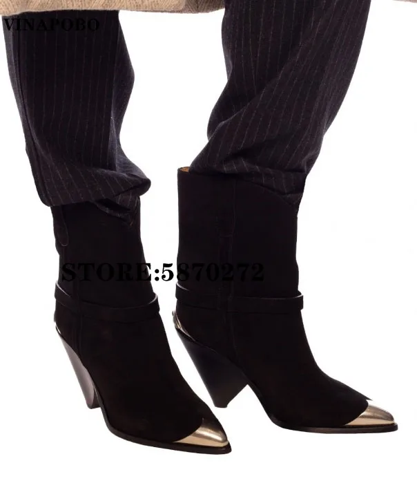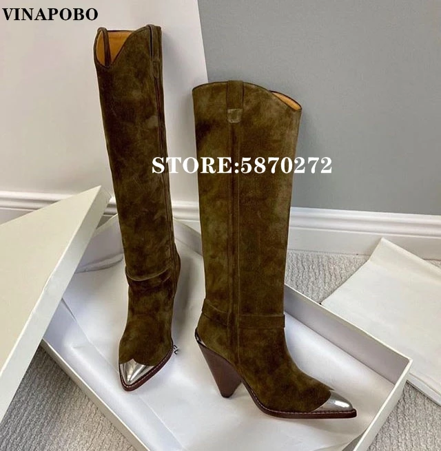 Женские сапоги на танкетке Vinapobo, черные сапоги до колена с острым носком, на танкетке, с закрытым носком, большие размеры