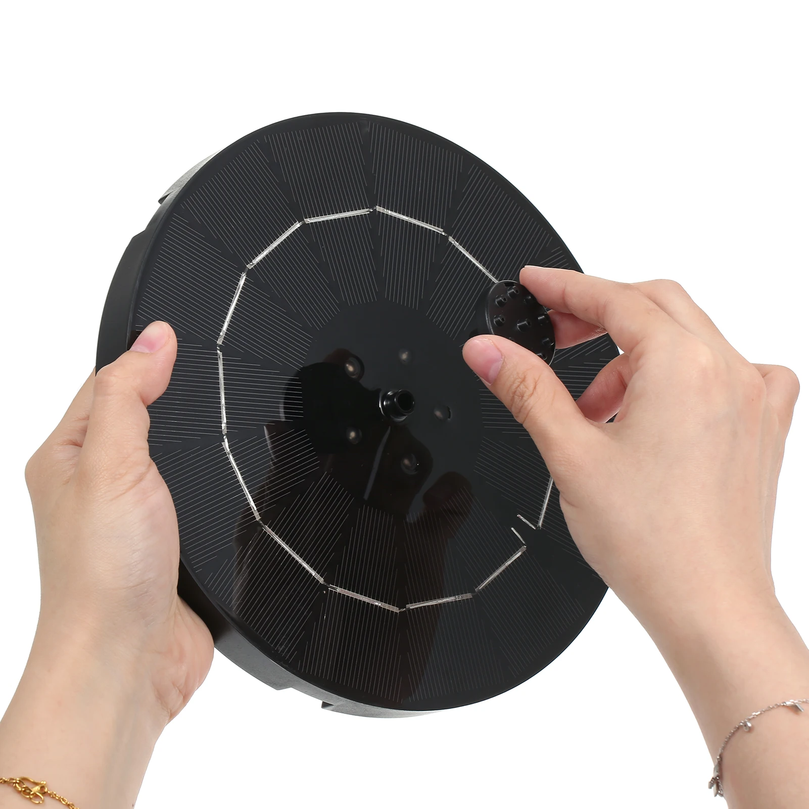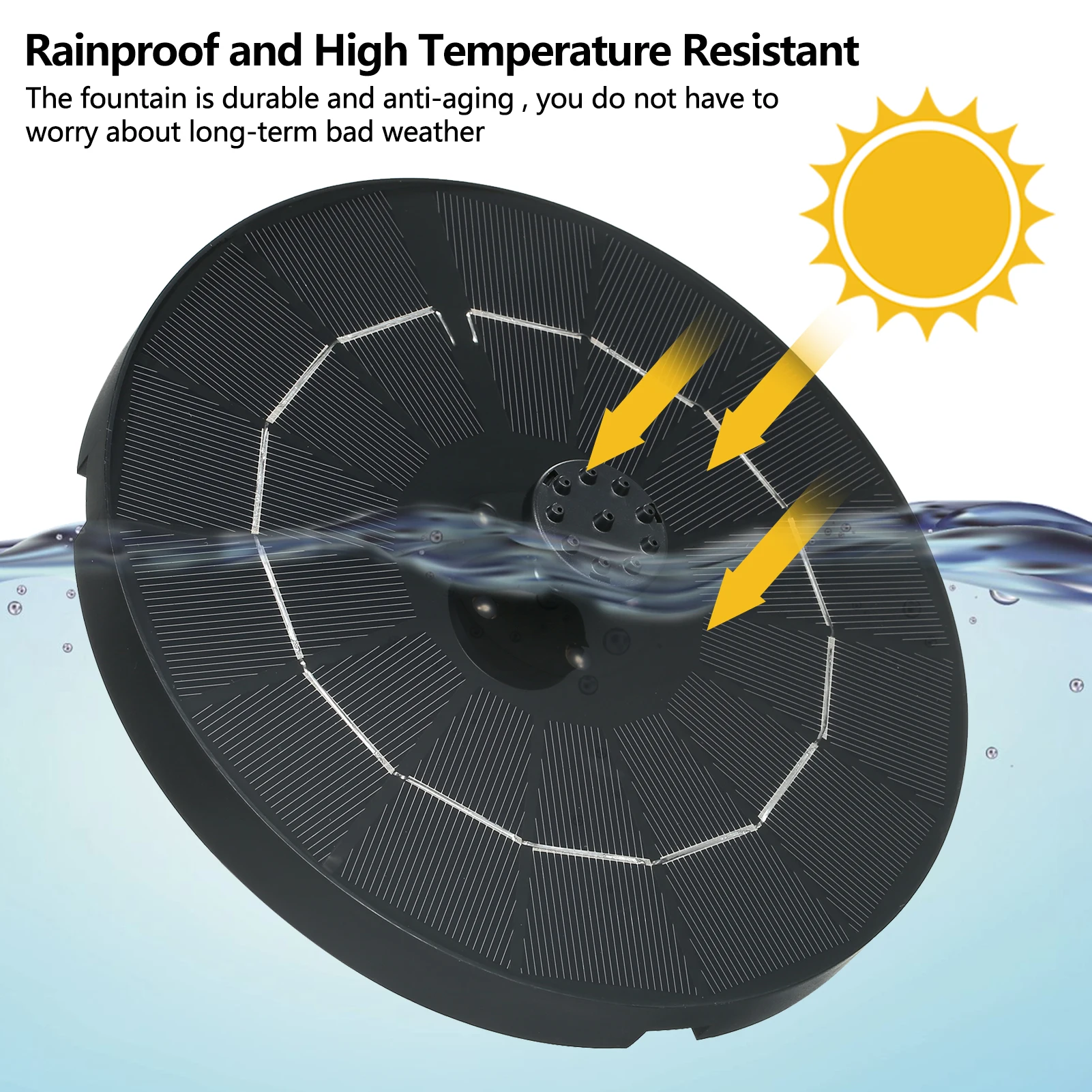 Водяной насос большого диаметра-это солнечная энергия с красочным дыхательным светом, перезаряжаемая литиевая батарея для отсутствия солнечного света. Поставляется с 6 насадками для различных эффектов распыления воды. Идеально подходит для садовых пейзажей.Особенности:5 шт. красочные дышащие огни, автоматически меняющие цвета.Когда есть солнечный свет, солнечная панель может поставить питание на водяной насос, и избыток электричества будет непосредственно заряжать аккумулятор.Яркий дышащий свет не включится, когда есть солнечный свет. При отсутствии солнечного света полностью заряженный аккумулятор может поддерживать 6 часов (непрерывный распылитель воды и непрерывный свет).6 типов насадок с совершенно разными эффектами распыления воды, принимает спиральный тип, не требуется переходная штанга, простая установка и разборка.При первом использовании, когда насос получает достаточно солнечного света, насос запустится в течение 3 секунд.Идеально подходит для птичьих ванн, аквариумов, небольших водоемов, бассейнов, садов, террас, газонов и циркуляции кислорода.Технические характеристики:Материал: АБС-пластикЕмкость аккумулятора: 1800 мАч, 2200 мАч (опционально)Панель солнечной батареи:Напряжение: 4,5 VМощность: 3,8 WДиаметр: 190 мм/7,48 дюймаКоличество цветных огней: 5 шт. красочных дыхательных огней (автоматическое изменение цвета)Водяной насос:Напряжение: 4.5VDCМощность: 1,0 WАнти-сухое сжигание: с, анти-сухое сжигание интегрировано с панелью управленияМаксимальный подъем: 1,3 мМаксимальный расход: 240 л/чВысота распыления: 0,6 мПерезаряжаемый литиевый аккумулятор: 3,7 вСрок службы батареи: более 500 цикловВес упаковки:1800 мАч: 390 г/13,76 унций2200 мАч: 395 г/13,93 унцийРазмер упаковки: 210*200*60 мм/8,27*7,87 * 2.36inУпаковочный лист:1 * водяной насос6 * насадки1 * Основание сопла1 * Руководство пользователя