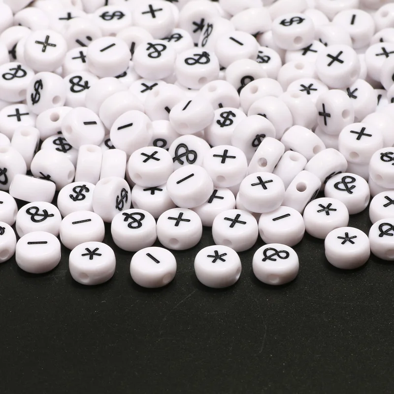 Белого цвета, буква круглые акриловые бусины с плоским символ Свободные Spacer Бусины Для для изготовления украшений вручную браслетов или бус своими руками