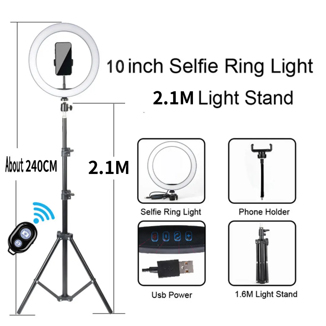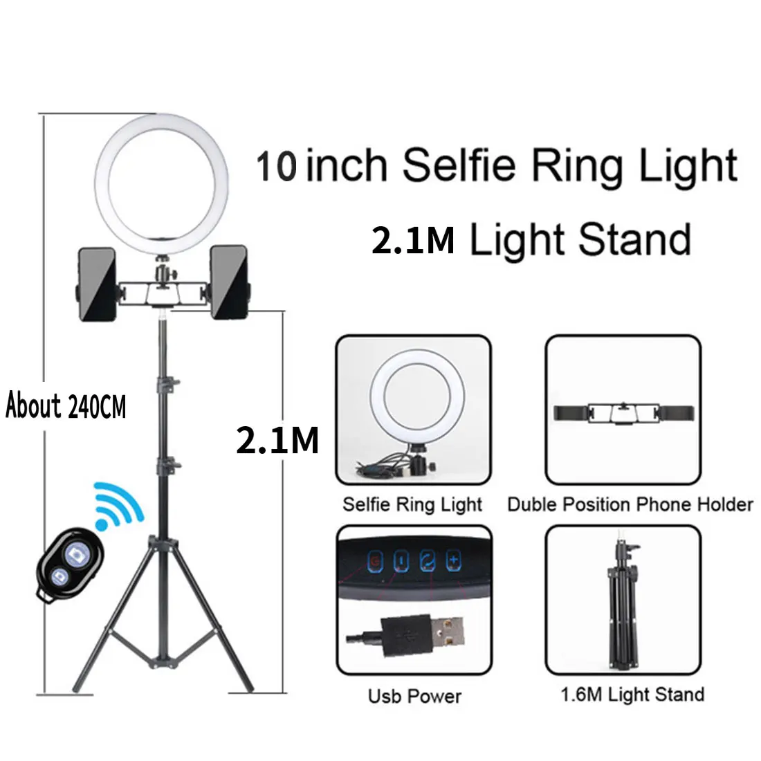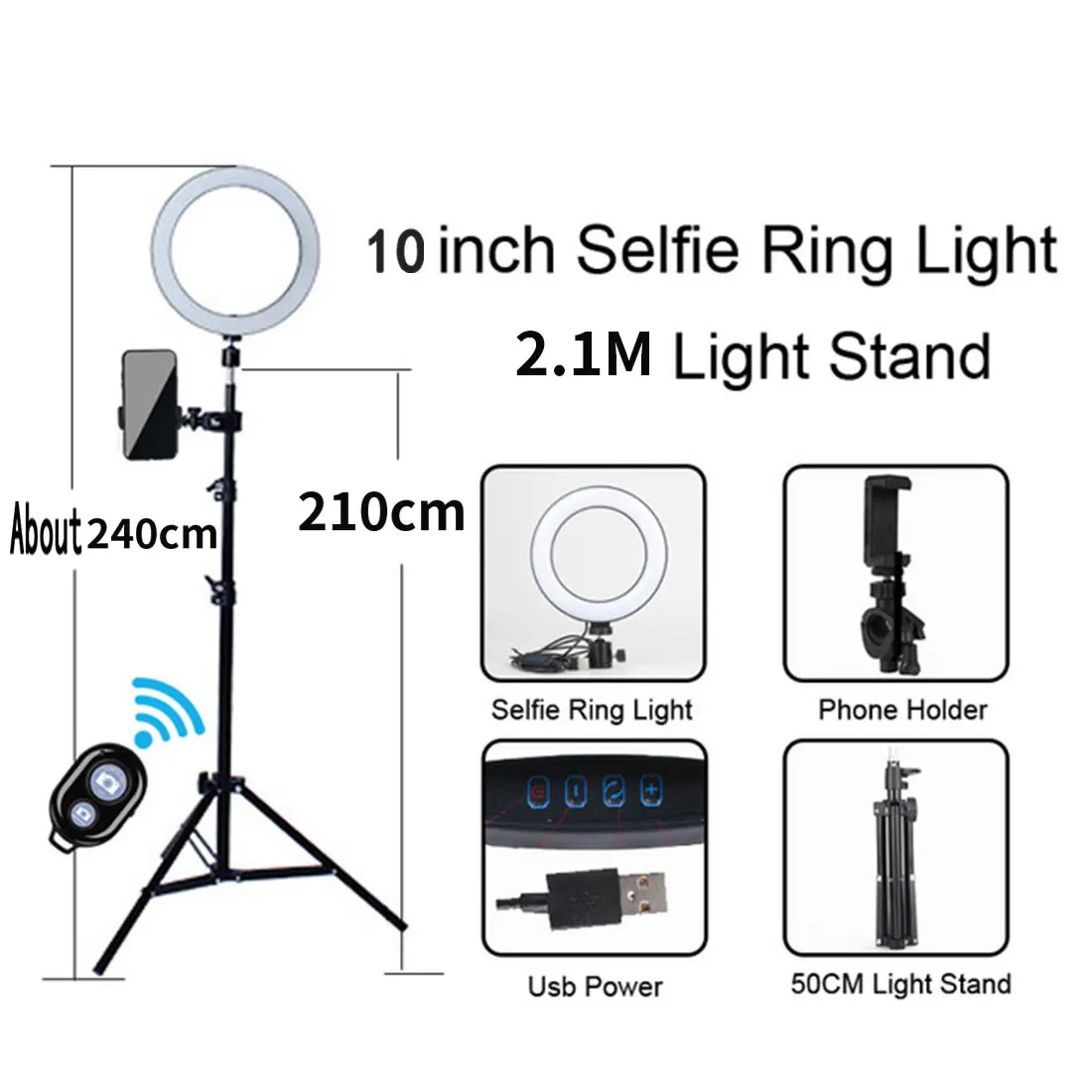 10 дюймов Vlog видео светодиодный селфи кольцо светильник USB кольцо лампа, освещение для фотосъемки светильник с держателем для телефона 210 см штатив-Трипод стойка для макияжа Youtube