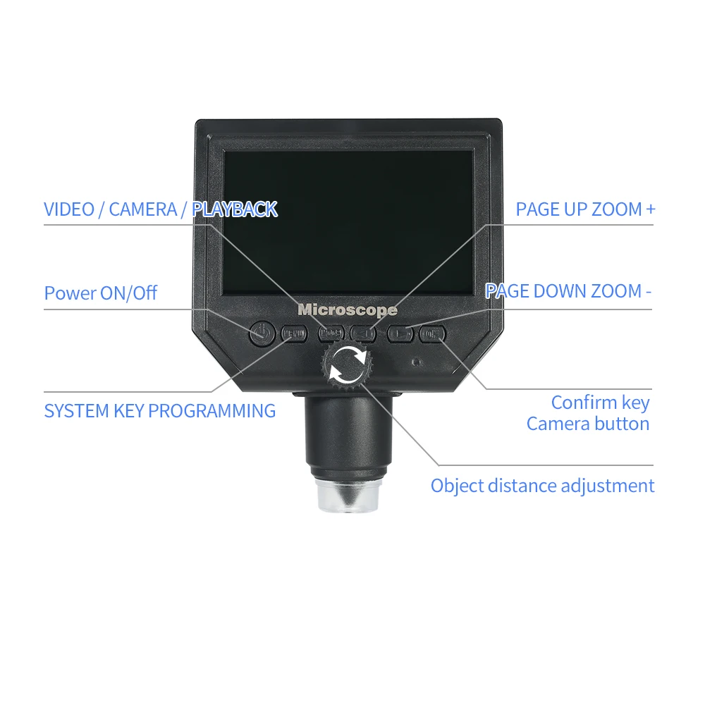 Цифровой микроскоп с ЖК-экраном 4,3 дюйма, 3,6 МП, HD зум, 1-600X, ...