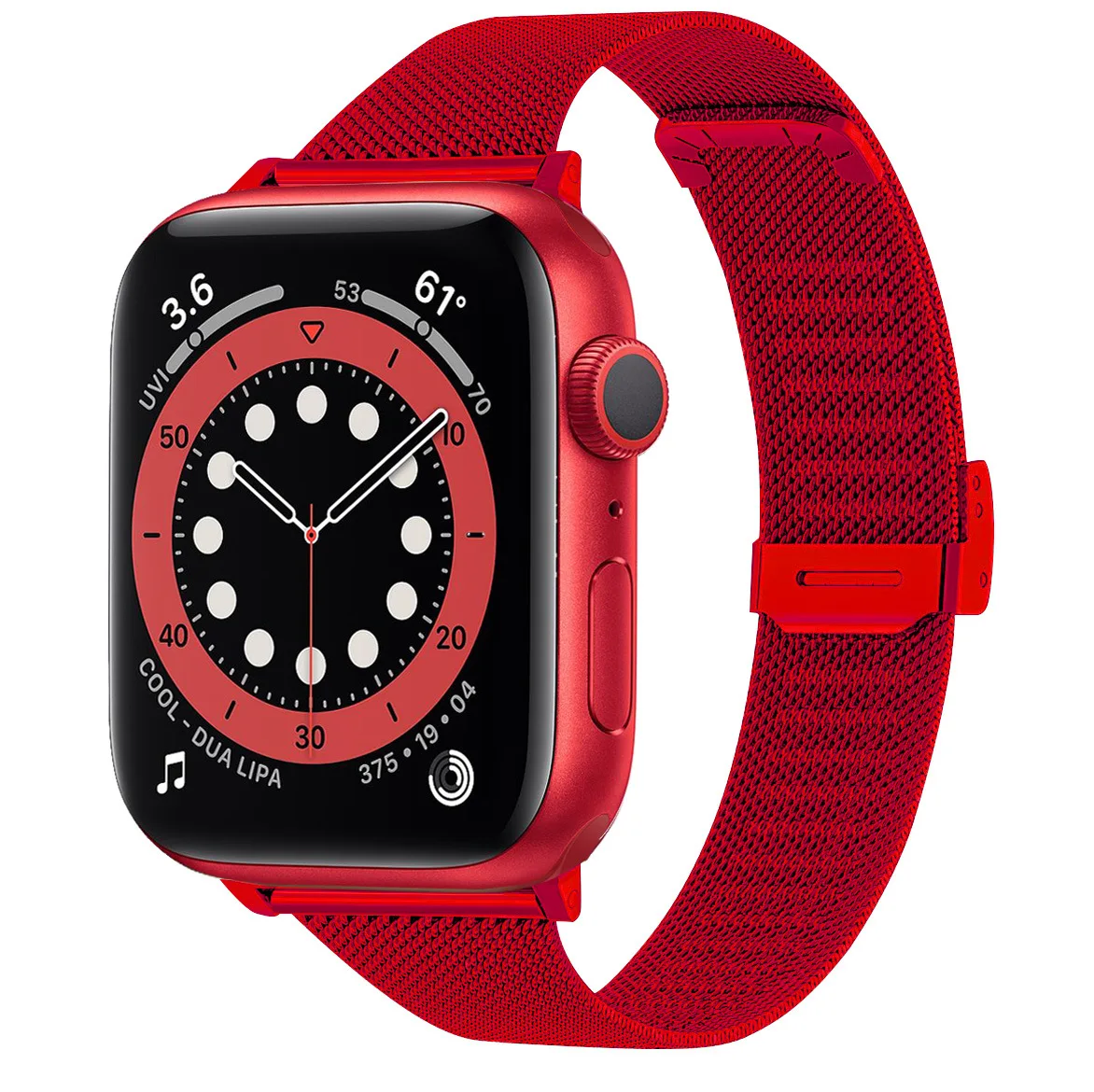 Ремешок из нержавеющей стали для Apple Watch band 6 5 se 4 3 2, металлический браслет с Миланской петлей для iWatch series 44 мм 40 мм 38 мм 42 мм красный
