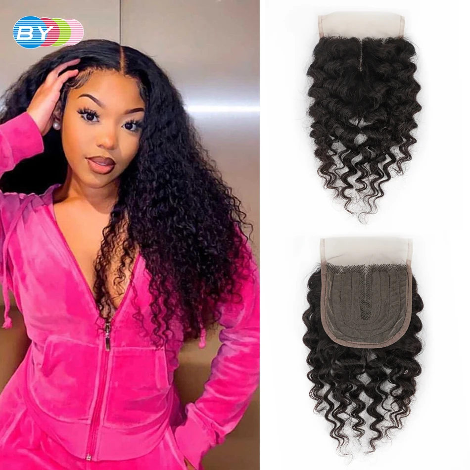 Застежка из натуральных волос с глубоким кудрявым эффектом 4x4, зас...