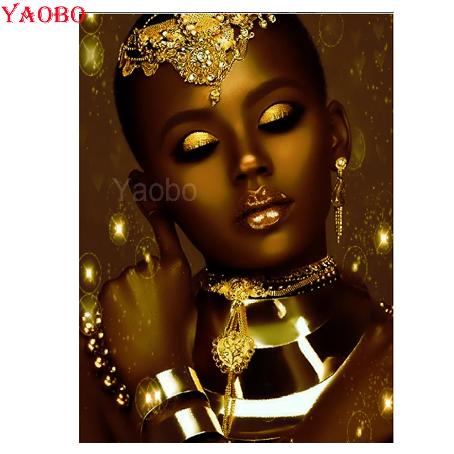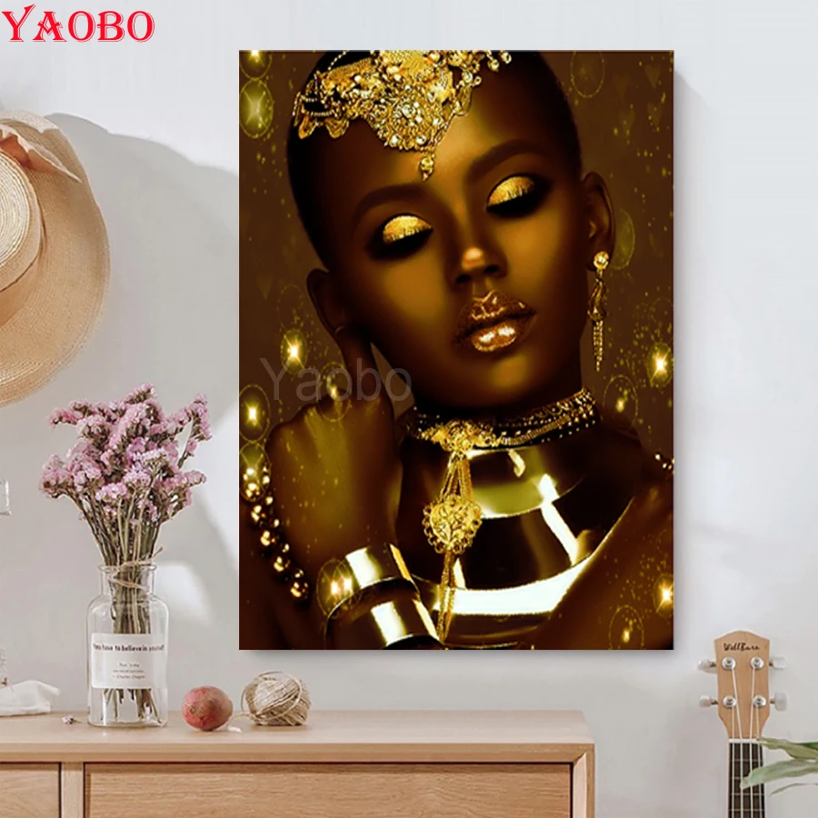 Художественная Африканская женщина с макияжем золотого цвета, алмазная живопись стразы, алмазная вышивка, мозаичная картина-пазл