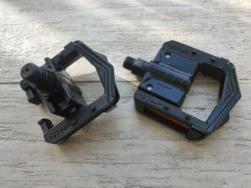 Посылка заняла две недели до SG. Педали около 490gm на пару. Они складываются, но будьте осторожны, если вы используете свои руки, так как пружинное натяжение сложно и может легко повредить. Используйте свою стопу, если вы достаточно искусны. После складывания Экономия пространства не такая хорошая, как съемные педали