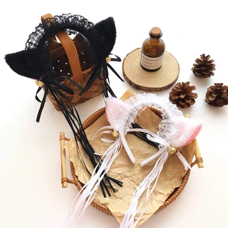Кружевной ободок с колокольчиками и кошачьими ушками, аксессуары для волос, головная повязка для горничной