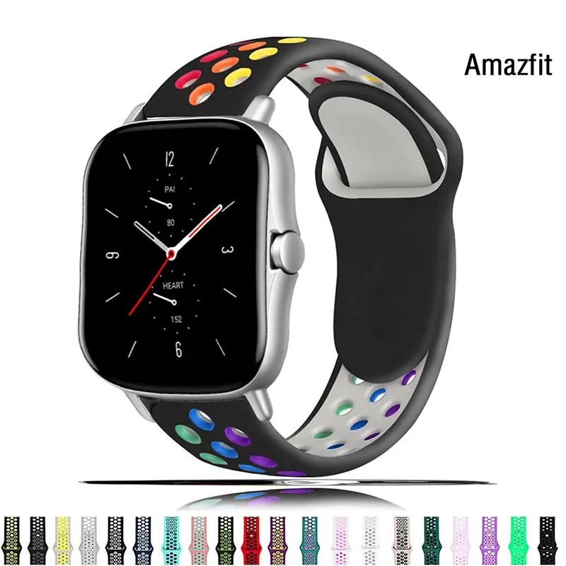 Силиконовый ремешок 20 мм/22 мм для Amazfit GTS/2/2e/GTS2 Mini/GTR 42 мм/47 мм/GTR2/2e/stratos 2/3, спортивный браслет для часов Amazfit ремешок bip