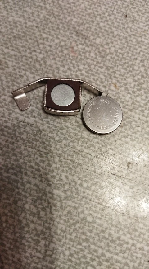 держится довольно крепко из-за резиновой прокладки (с той стороны, где магнит). Почему-то посылка не попала в консолидированную посылку, и ехала долго. с продавцом не общался (и это хорошо). Батарейка cr2032 на фото- для сравнения