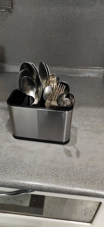 качественная сушилка для столовых приборов,но очень большая...использую как подставку для поварешек..и прочей ерунды крупногабаритной..чайную ложку из этой банки не вытащить