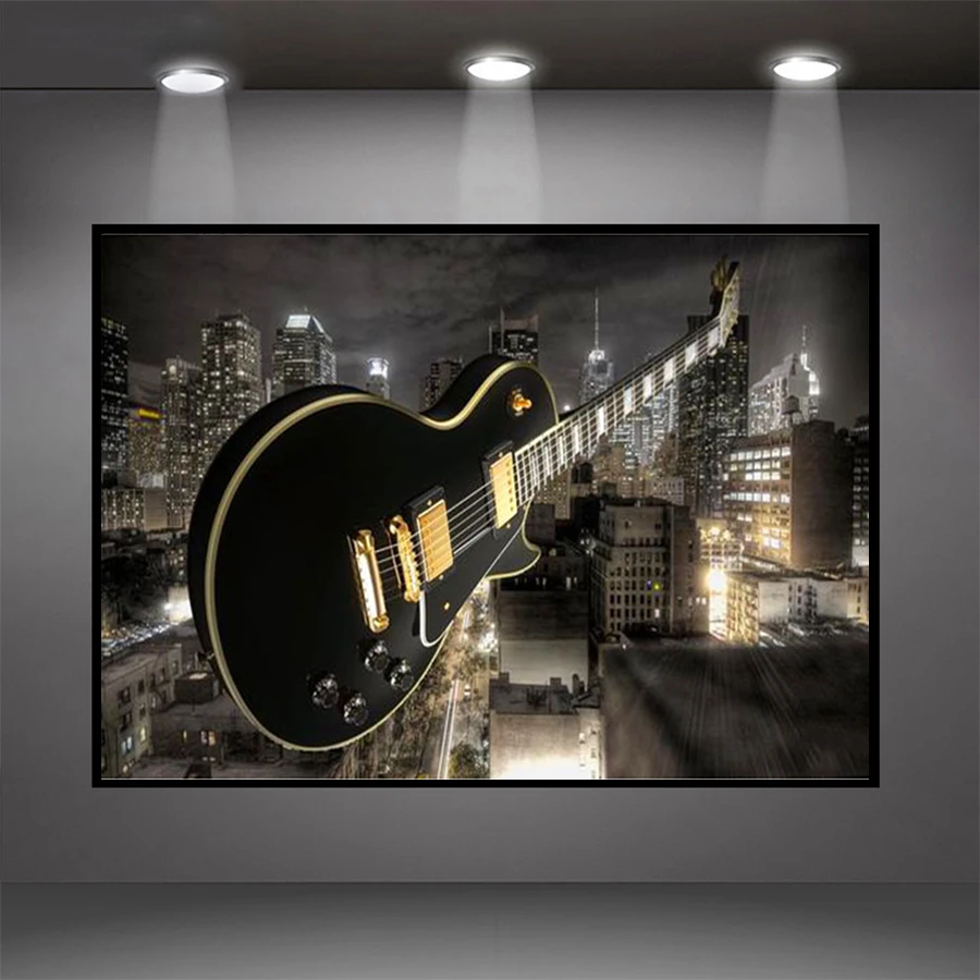 5d алмазная живопись сделай сам, музыка, гитара, девушка, городская ночь, полная квадратная картина стразы, черно-белая мозаичная вышивка