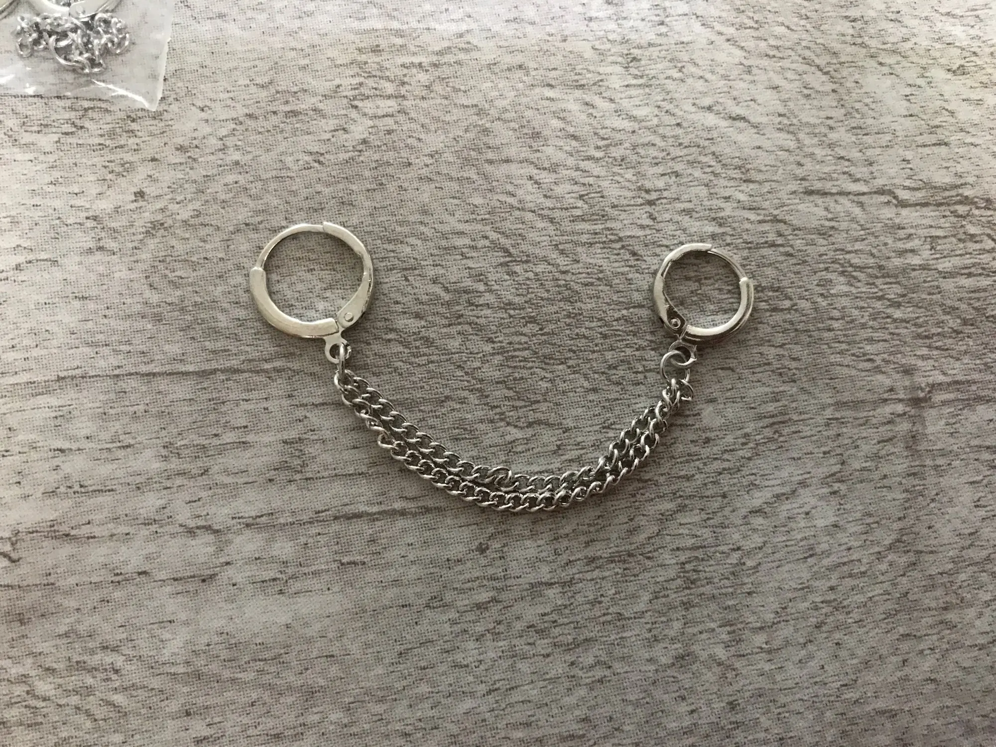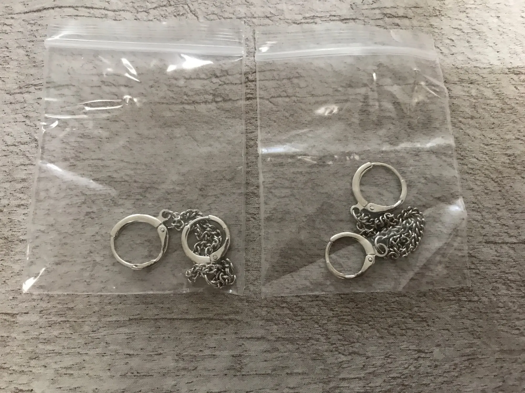 Колечки одинакового размера. Маленькие, цепочка смотрится дёшево. Потемнели быстро, одевала пару раз.