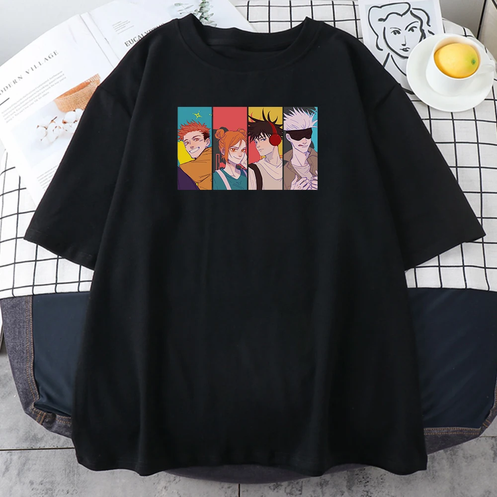 Футболка женская с японским мультяшным принтом Сатору годжо, модная Облегающая рубашка с принтом глаз, одежда в стиле аниме, большие размеры, на лето