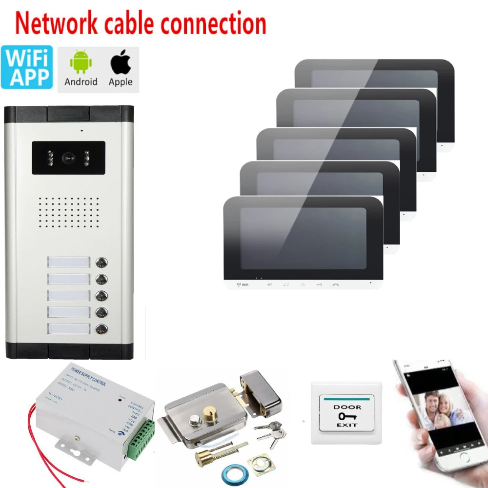 Видеодомофон 1000TVL, 7 дюймов, WiFi, проводной, для 2-5 квартир