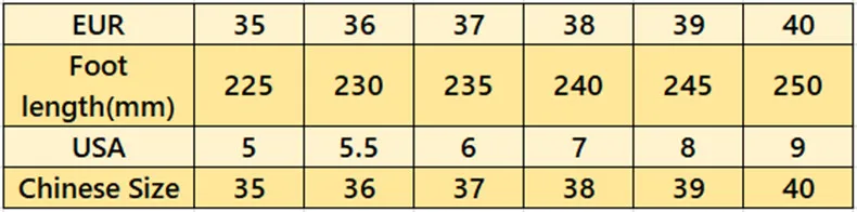 Уважаемые покупатели, добро пожаловать в наш магазин. Для того, чтобы дать вам лучший опыт покупок, мы тепло напоминаем Вам.Из-за различий в стандартах размеров обуви в разных странах, пожалуйста, тщательно выбирайте размер в соответствии с длиной Вашей стопы.Вы можете ознакомиться с таблицей размеров обуви.