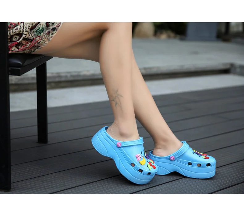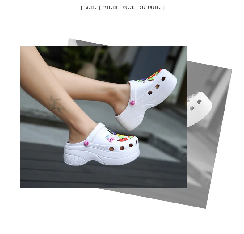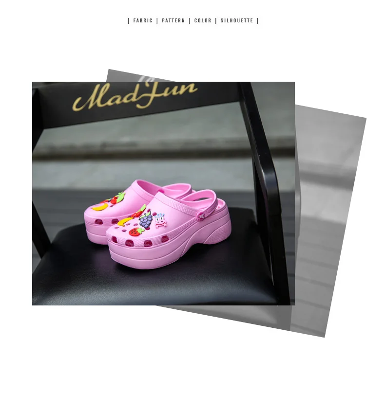 Ярко-розовые женские сабо; Летние женские медицинские сабо на платформе; Садовая обувь с фруктовым принтом; Женские пляжные сандалии; Сандалии
