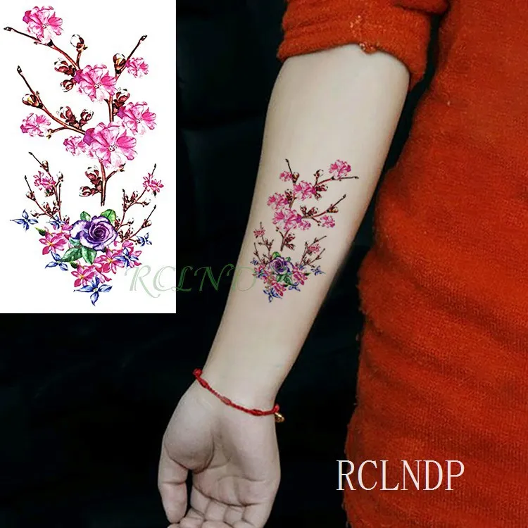 Временная водостойкая наклейка для татуировок с розовыми цветами, м...