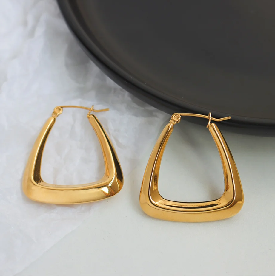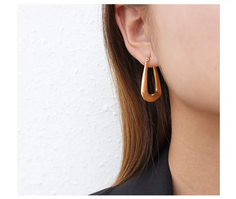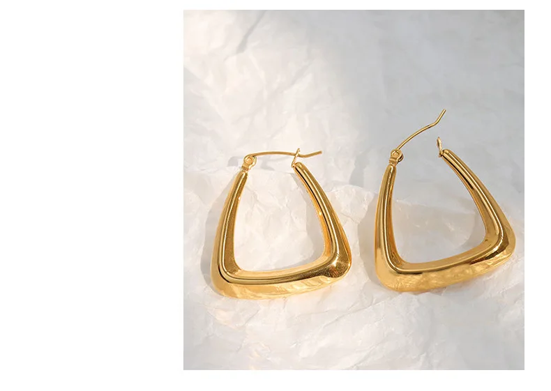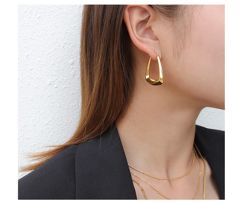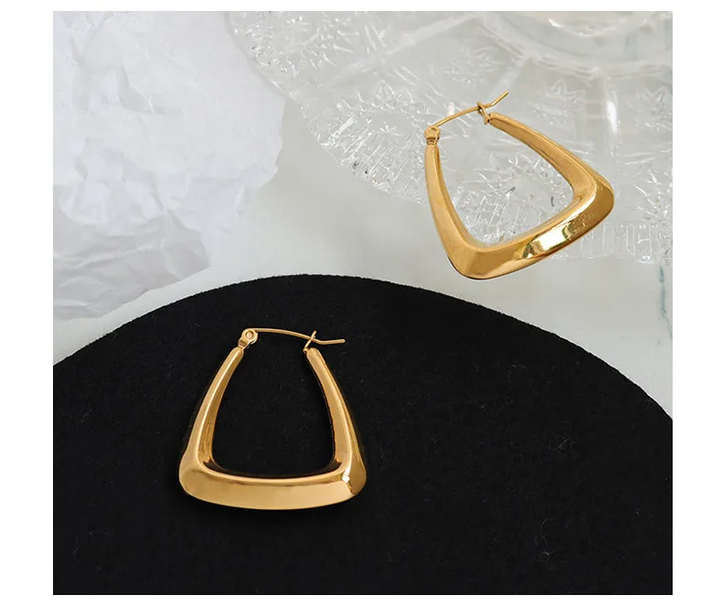 2021 новые винтажные Стиль не тускнеет, золотое покрытие, винтовой квадрат гладкой массивные серьги-кольца из нержавеющей стали для женщин ювелирные изделия