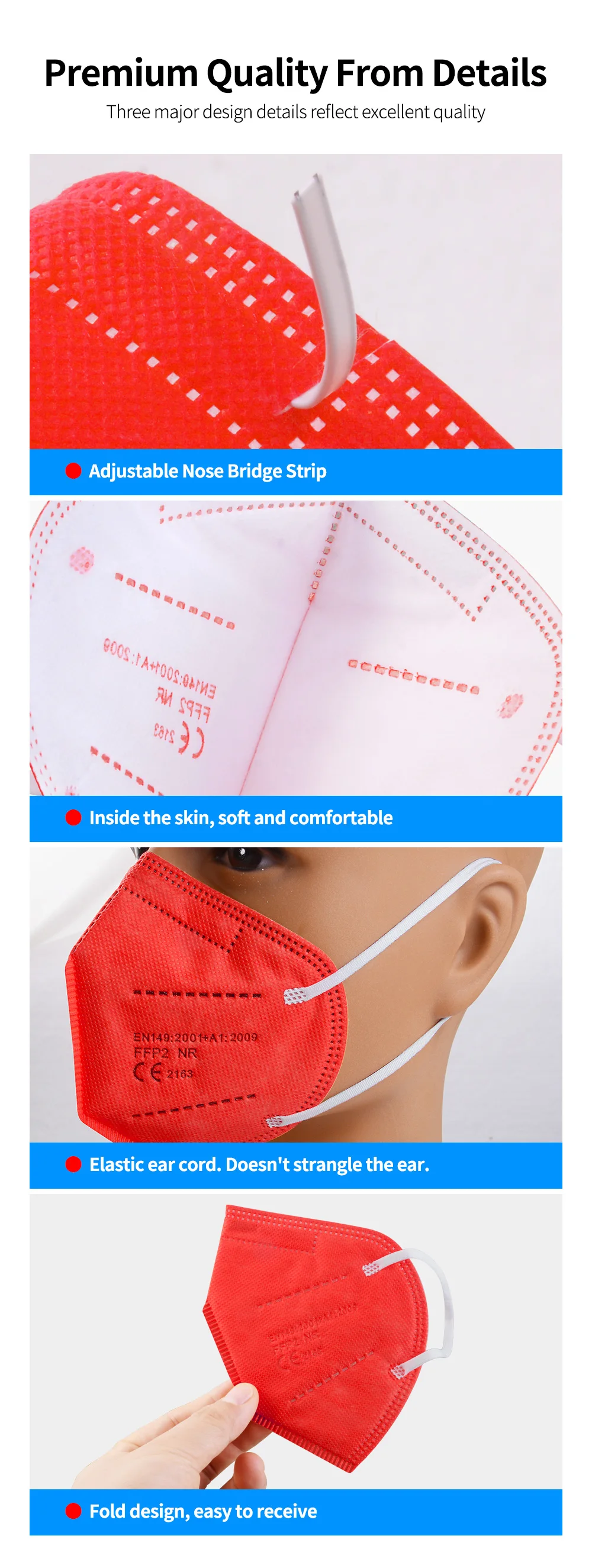 Одноразовая маска для повседневной носкиПараметры продукта:Материал: Нетканая тканьПодходящий сезон: Весна, Осень, Зима, ЛетоЦвет: синий/розовый/фиолетовый/розово-красный/белый/черный/оранжевый/серый/темно-синийСтиль маски: подвесной Тип ухаРазмер: стандартный размер, как показано на картинкеОсобенности:1. Новая ПП Нетканая ткань, мягкая и прозрачная, удобная и дышащая2. Непрерывный процесс привязки3,5-слой дизайн обеспечивает больше места для ухода за лицом дыхания4. Пластиковые носоупоры, алюминиевые и пластиковые носоупоры5. Многослойная защита дыхательного здоровья6. Можно использовать повторно, не моется