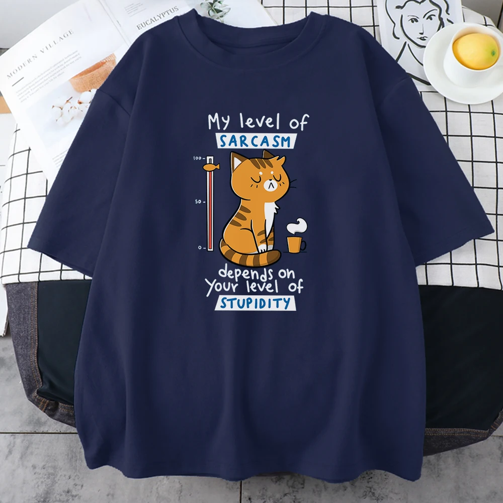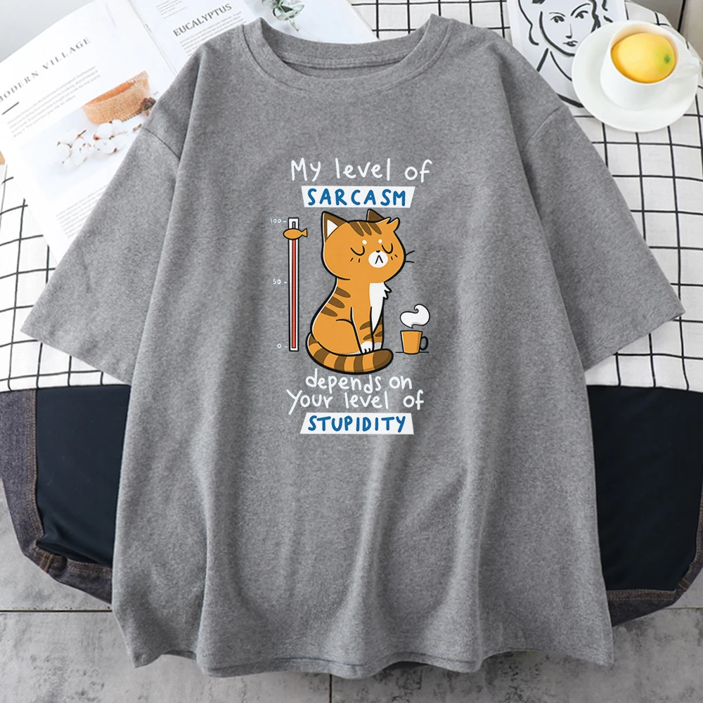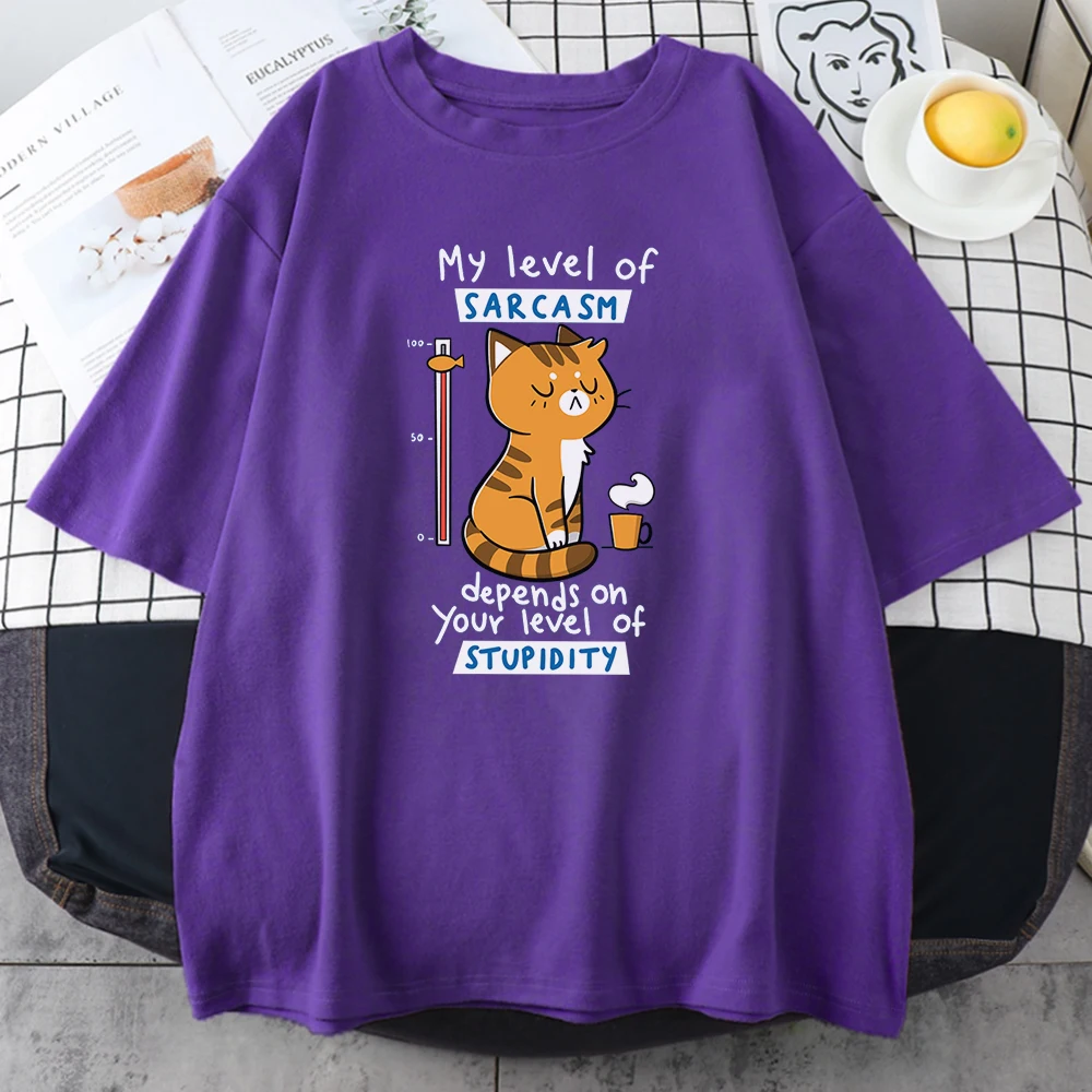 Женская футболка Scrcasm с изображением милого кота и глупости, одежда с короткими рукавами, модные стильные футболки, летние повседневные женские футболки