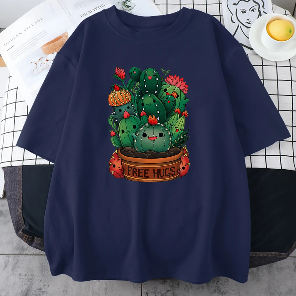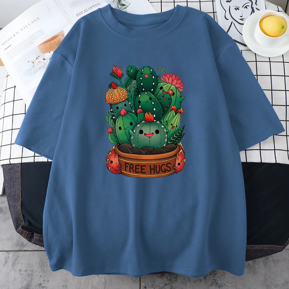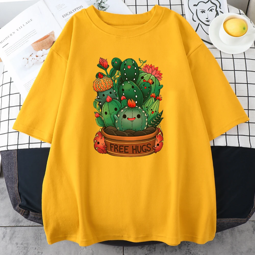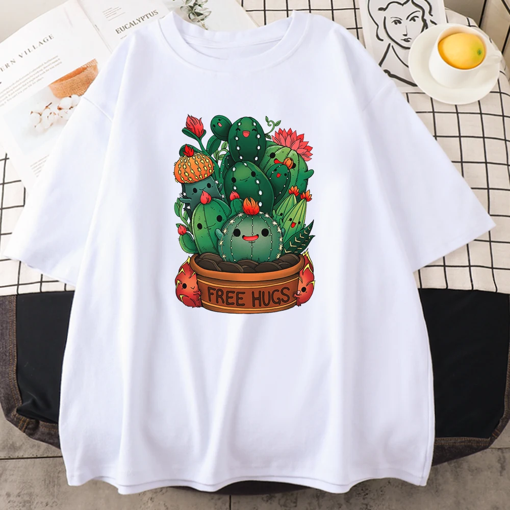 Симпатичные завод кактус Free Hugs принт женские футболки для всей семьи, модные футболки для Стиль одежда с круглым вырезом, мягкая футболка большого размера в форме крыльев летучей мыши, свободная женская футболка