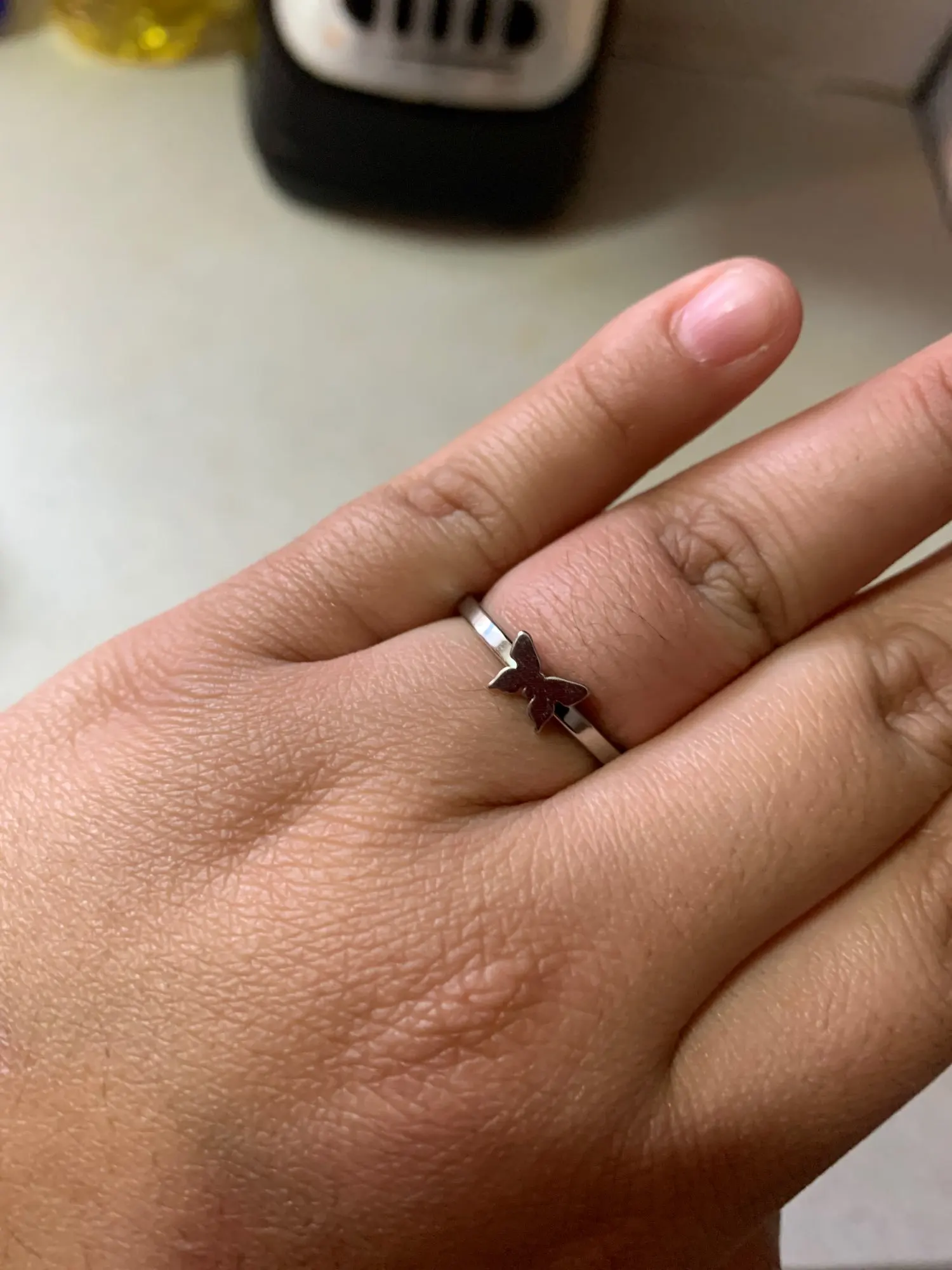 Очень быстрая доставка! Кольцо хорошего качества, дизайн очень милый. Я получил размер 8, и он мне подходит в самый раз. Мне тоже нравится серебряное прикосновение. Отлично подойдет ко многим нарядам.
