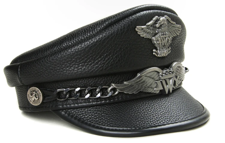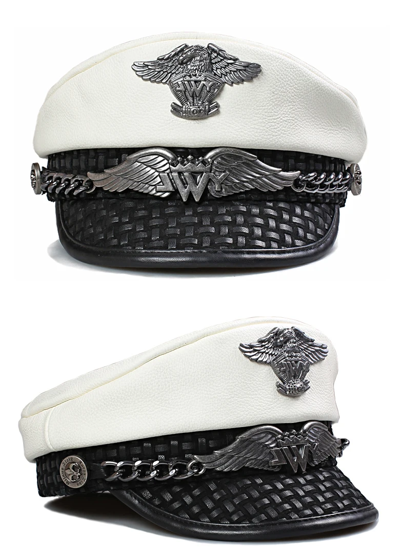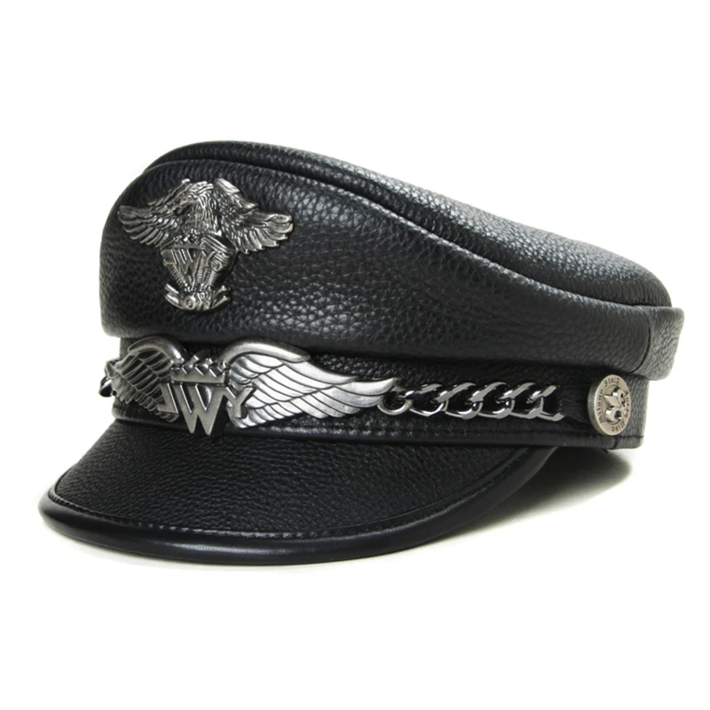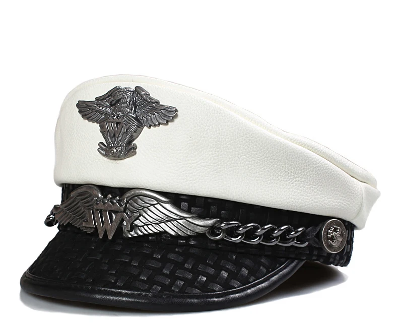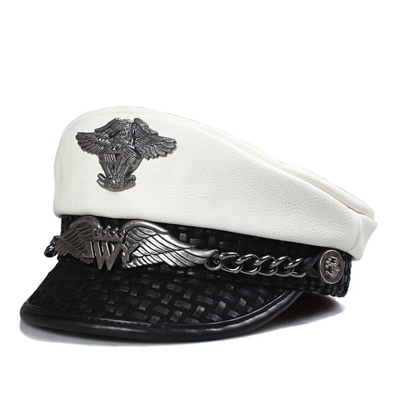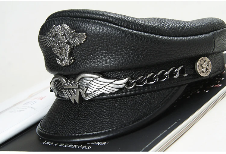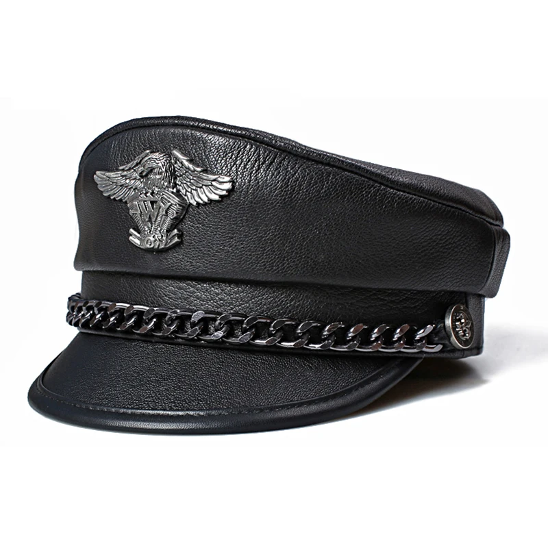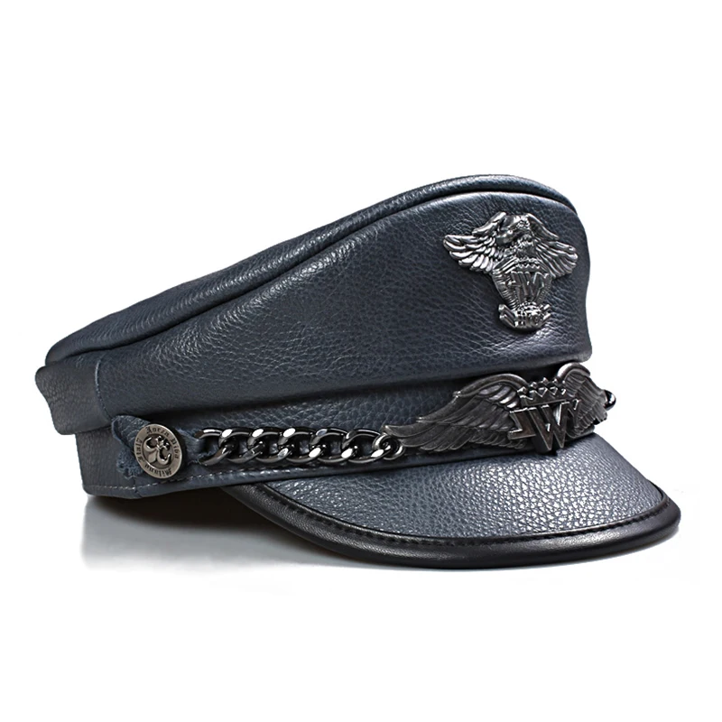 Модная военная шапка унисекс из натуральной кожи, Осенние матросски...