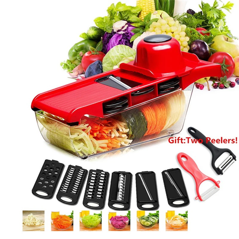 Овощерезка-мандолина, слайсер для картофеля, моркови, сыра, Овощная терка, кухонные принадлежности, в подарок, 2 ножа