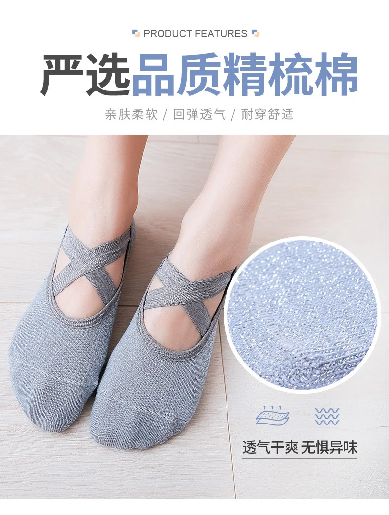 Новинка, модные шелковые женские спортивные носки для йоги, Нескользящие дышащие спортивные носки до щиколотки с перекрестной спиной для пилатеса, танцев, спортзала, фитнеса, нижнее белье