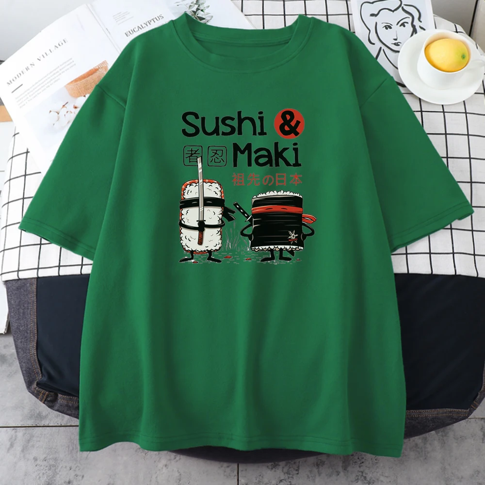 Женские футболки с забавным принтом Sushi Maki Ninja Kawaii, летняя одежда в стиле ретро, футболка большого размера с круглым вырезом, крутые стильные женские футболки