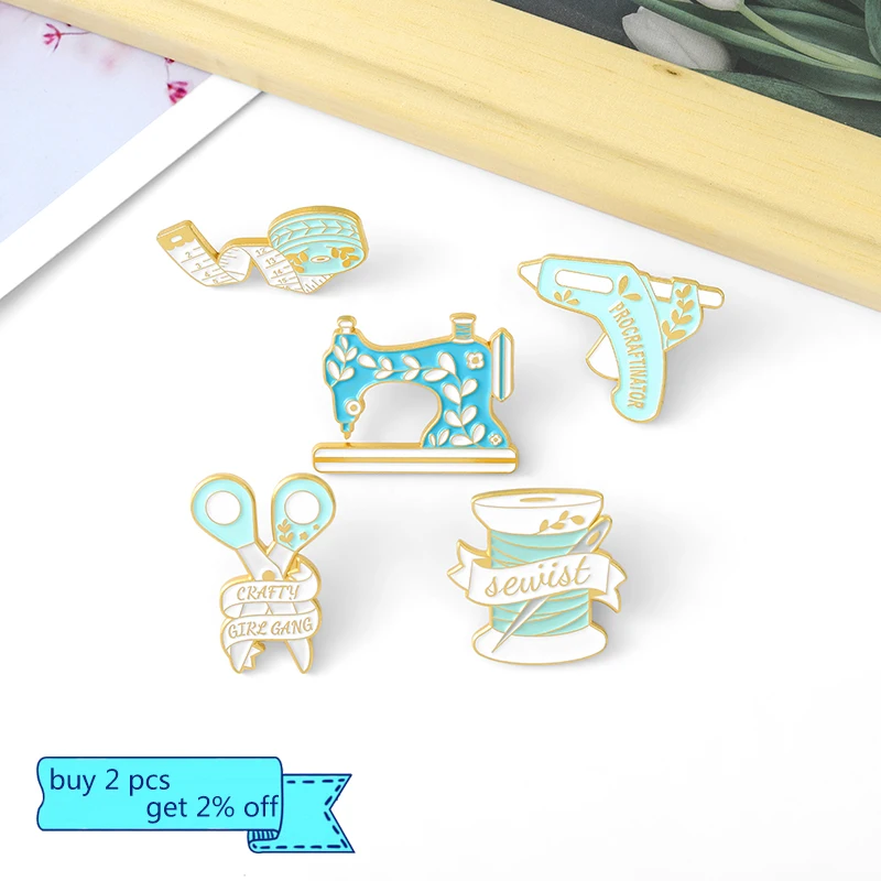 Эмалированные заколки для шитья, ножницы, машинка, рулетка, клеевой пистолет, брошь, лацкан, значок, сумка для женщин, Мультяшные украшения, подарки