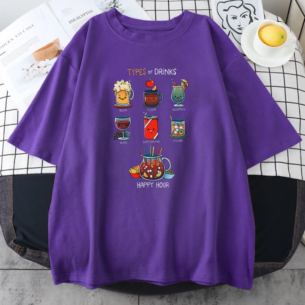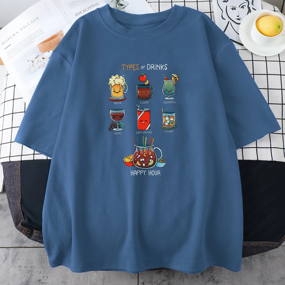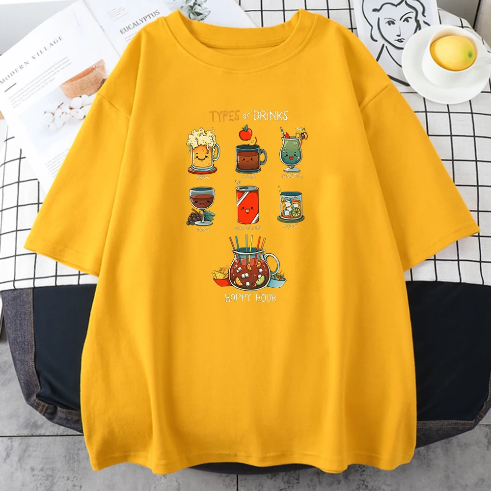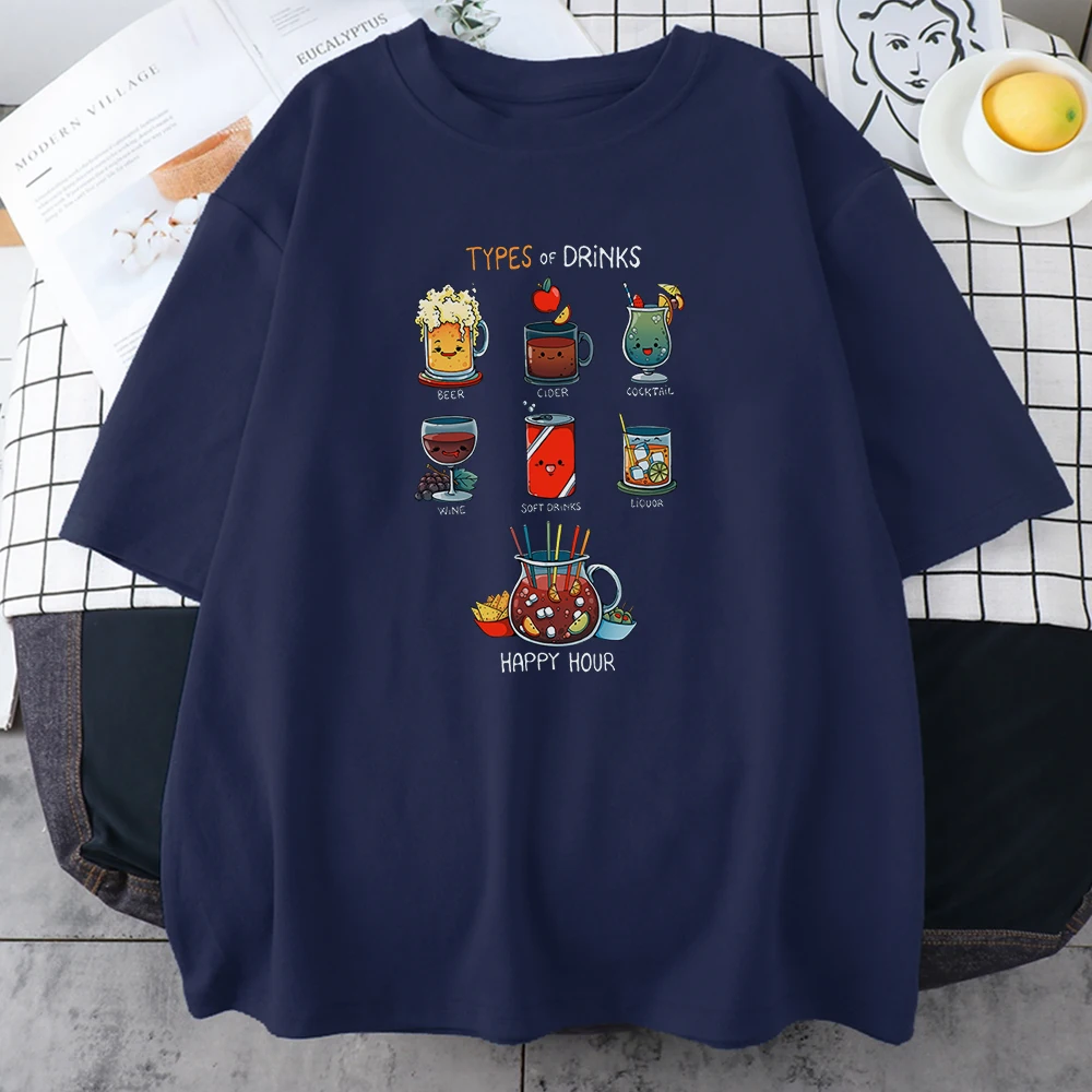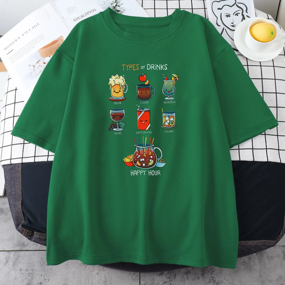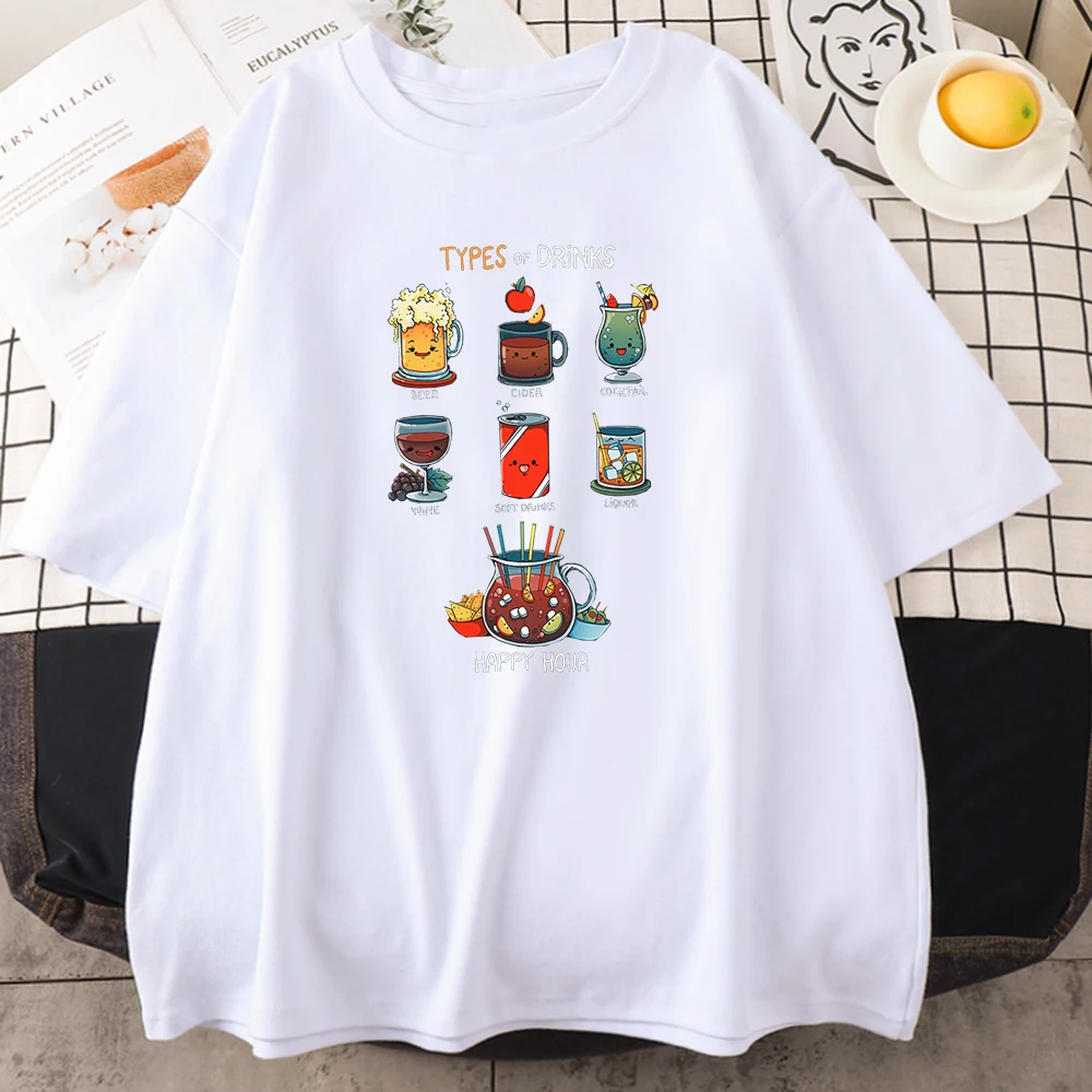 Женская футболка с принтом напитков, пива, сидра, вина, колы, топы с круглым вырезом, Повседневная стильная футболка большого размера, свободные женские футболки