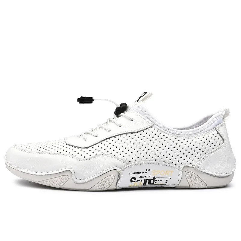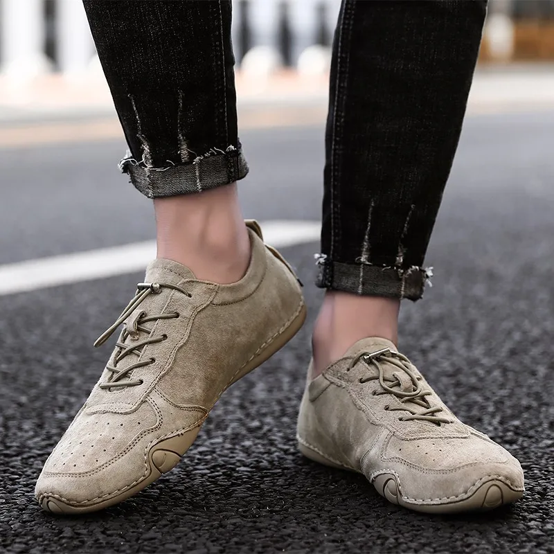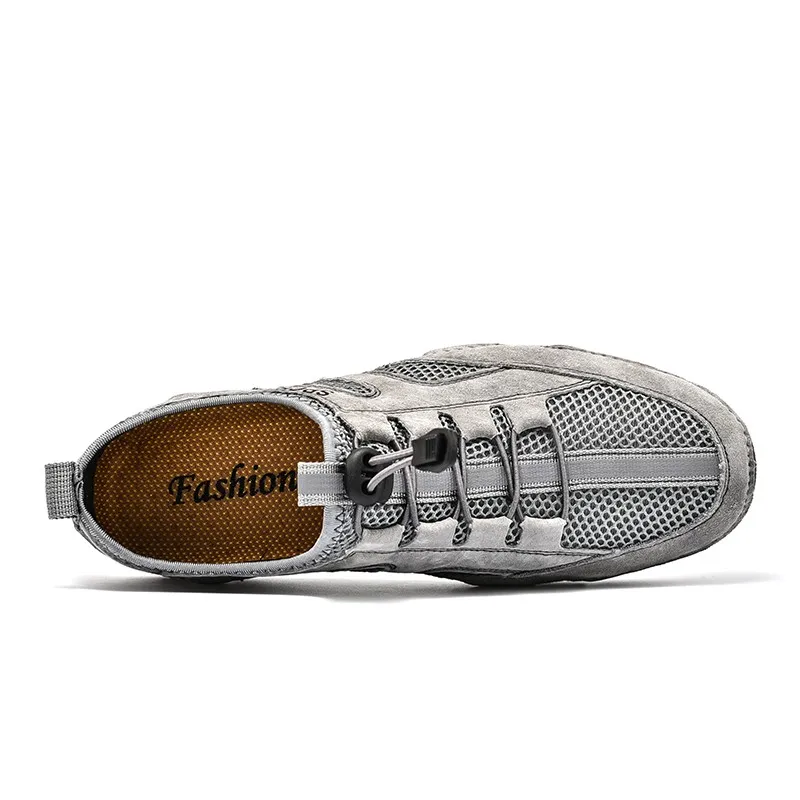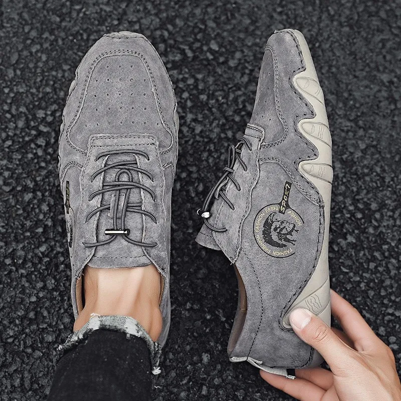 Кроссовки мужские из натуральной кожи, дышащие, повседневная обувь для вождения, дизайнерские, плоская подошва, серый цвет, лето