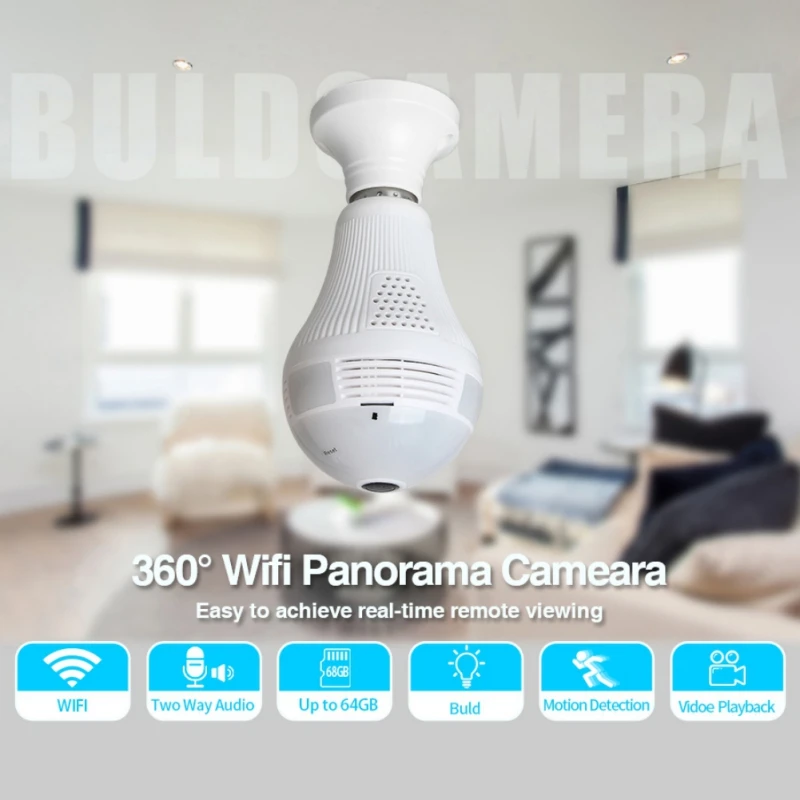 Беспроводной IP Камера лампа светильник 360 рыбий глаз панорамная Домашняя безопасность Камера 1.3MP Ночное видение P2P видеокамеры WiFi