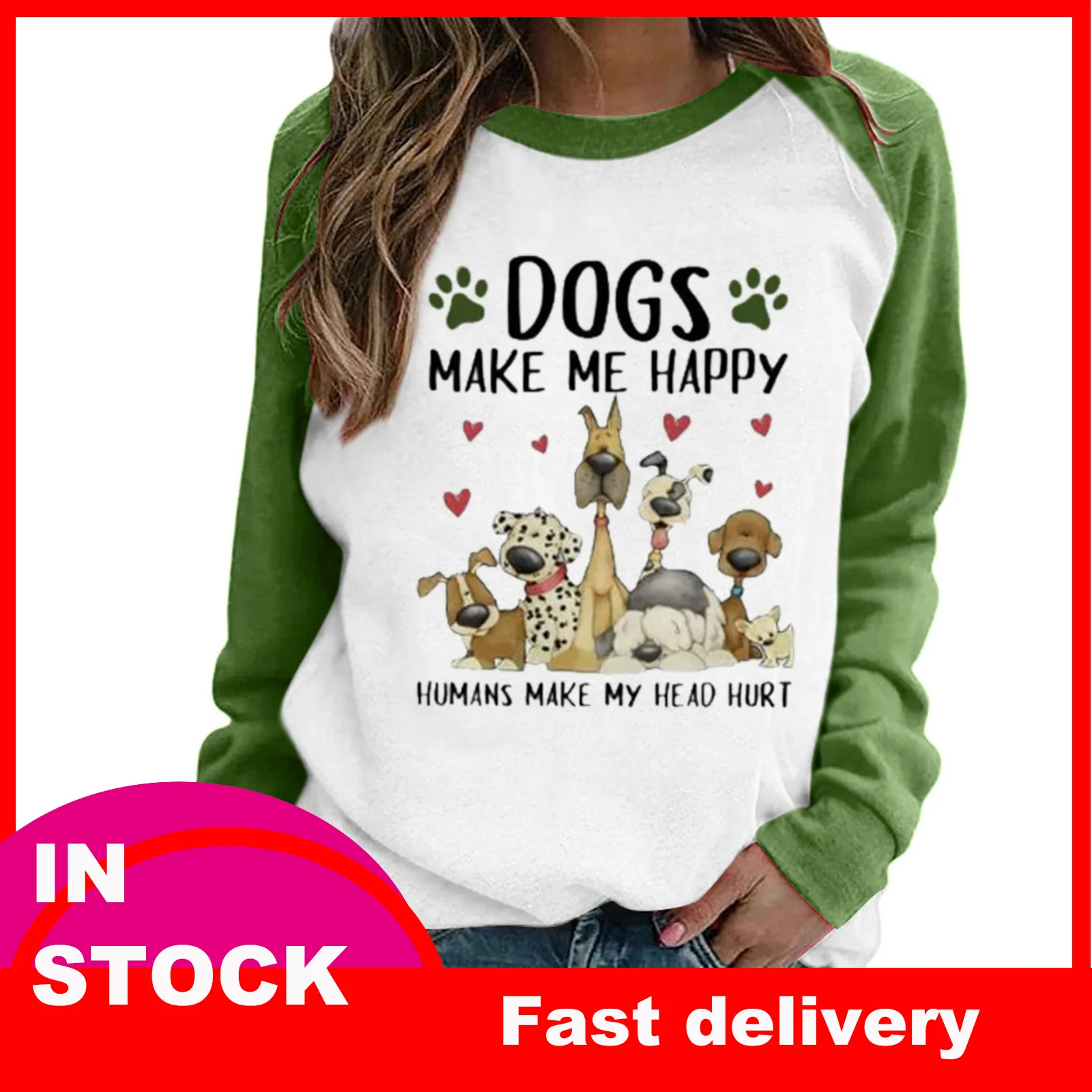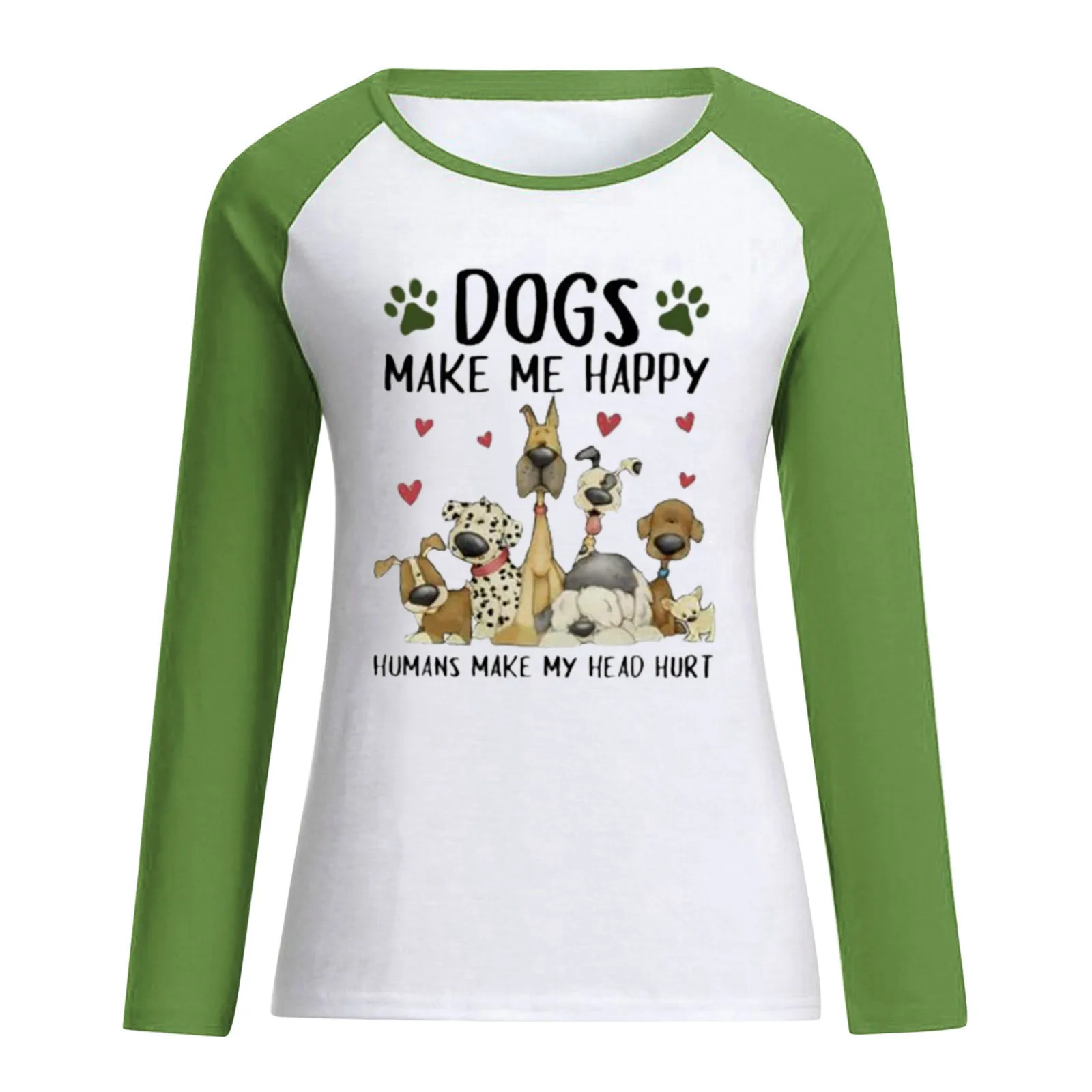 Женские повседневные футболки с принтом собаки, рубашки с длинным рукавом реглан, топы, пуловер на весну и осень, Базовая рубашка в стиле Харадзюку, женская одежда 2020