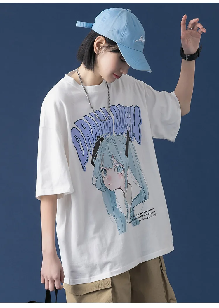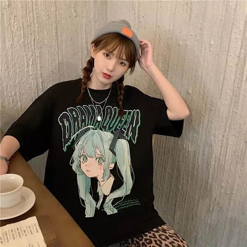 Летняя мультяшная аниме девочка Повседневный Топ Забавный японский ...
