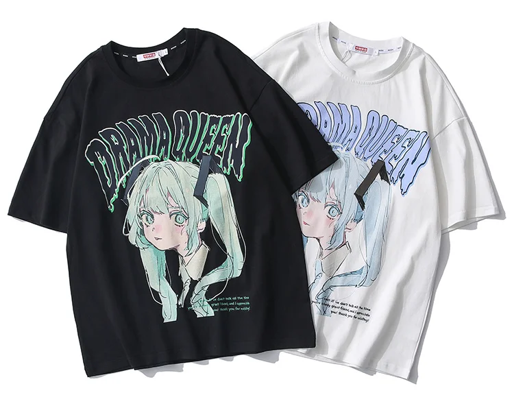 Футболка Мужскаяженская с круглым вырезом, модный топ с зелеными волосами и мультяшным принтом, уличная одежда в японском стиле Харадзюку, лето