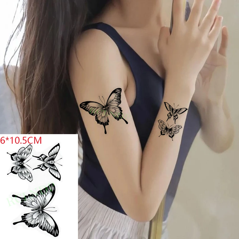 Водостойкая временная татуировка-наклейка ins в виде бабочки, черно-белая сексуальная флэш-тату для боди-арта, искусственное тату для женщин и мужчин