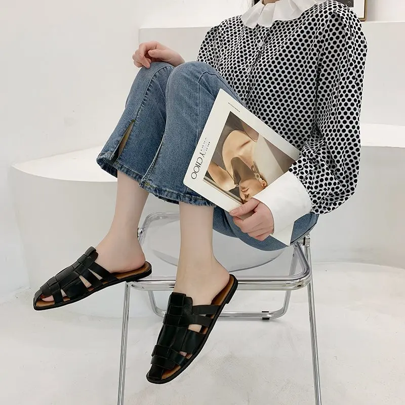 Весенняя дизайнерская Уличная обувь; Женские мюли; Шлепанцы на плос...
