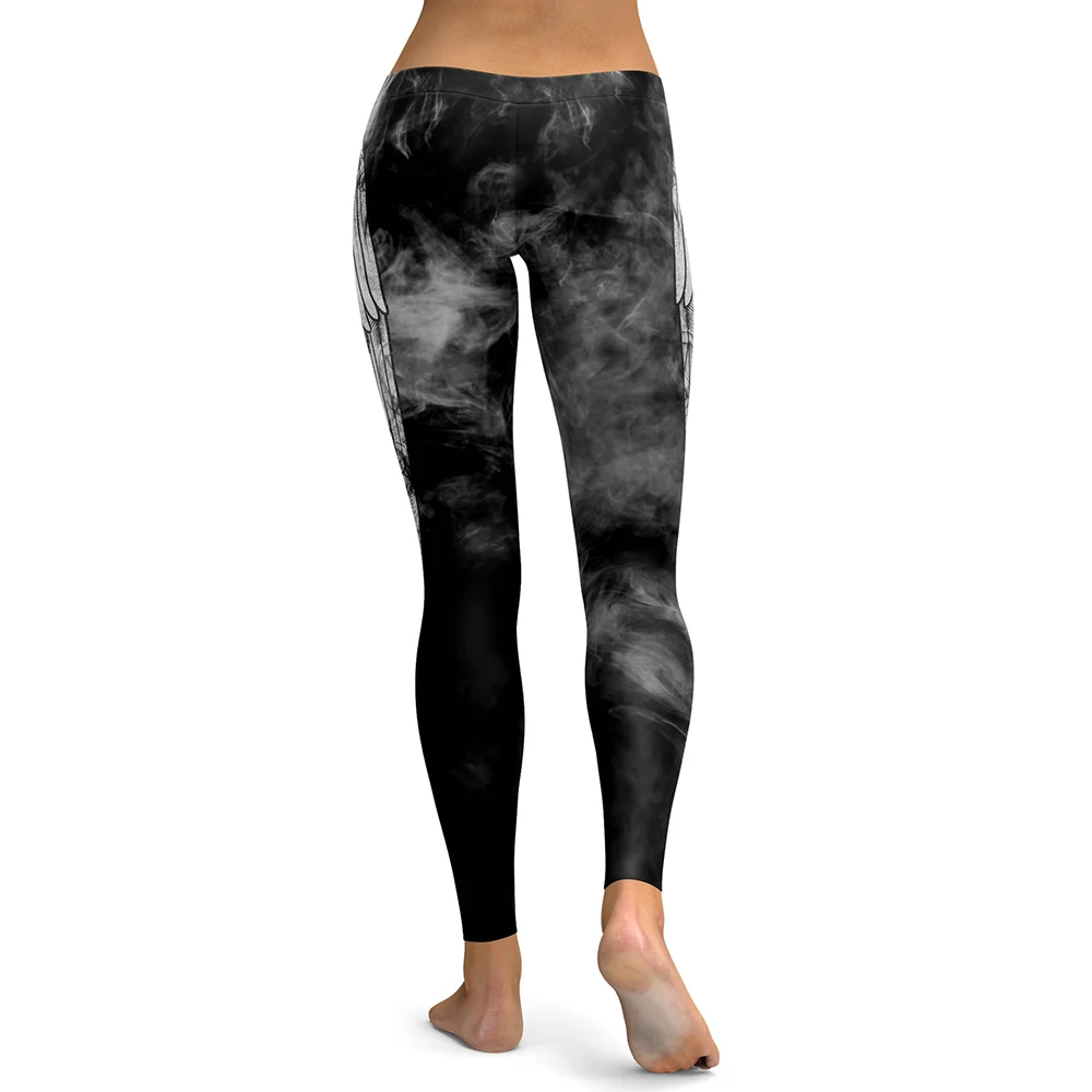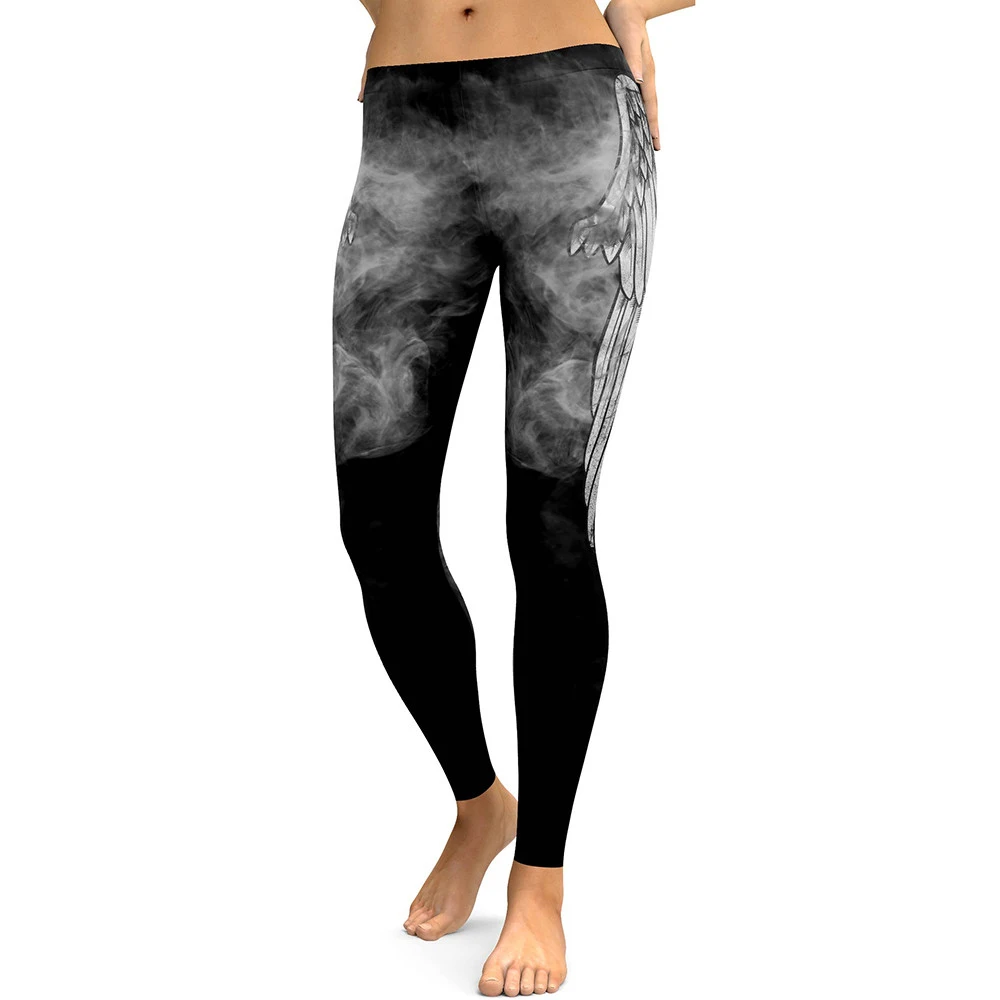 Модные ангельские крылья женские леггинсы с рисунком из аниме 3D печатные эластичные укороченные брюки повседневные спортивные Леггинсы для фитнеса штаны с рисунком