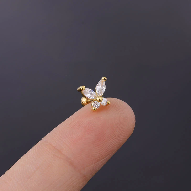 Серьга-гвоздик ювелирные изделия для пирсинга, верхняя планка с кристаллами бабочки, хряща козелка и завитка ушной раковины, тоннель ювелирные пробки для женщин и девушек, 1 шт.