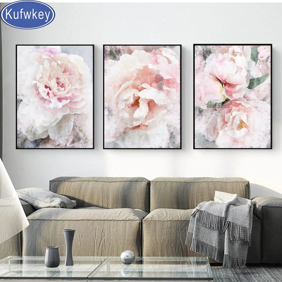 3 шт. Алмазная Картина Розовые свежие цветы 3d Вышивка крестом полный квадрат/круглый 5d Diy Алмазная картина Алмазная вышивка мозаика