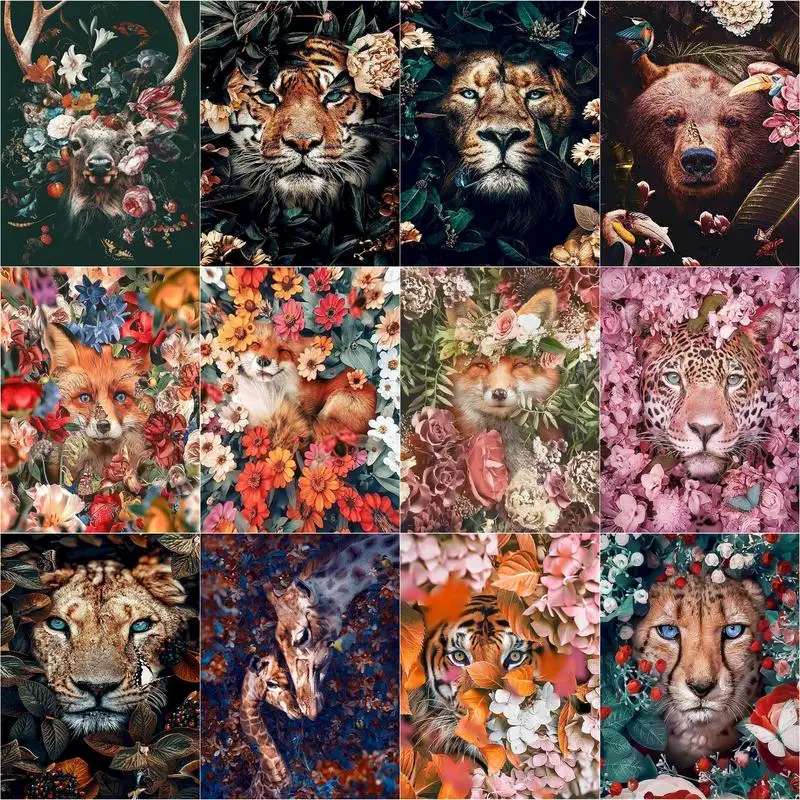 DIY Краски ing по номерам комплект с изображениями цветов и животны...