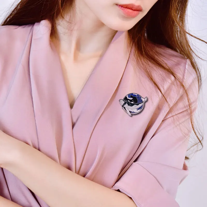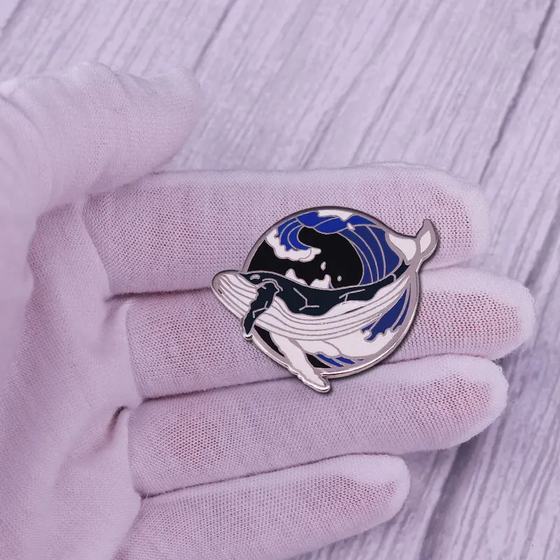 Для серфинга! Эмалированная брошь Ocean Wave Blue Китовая брошь