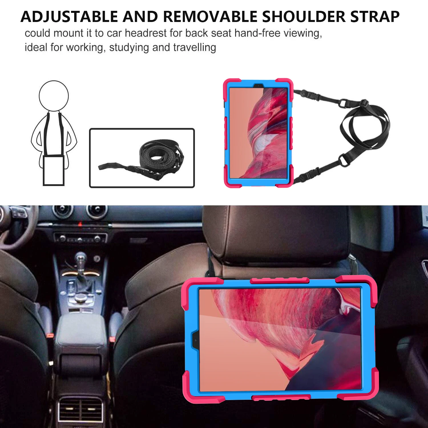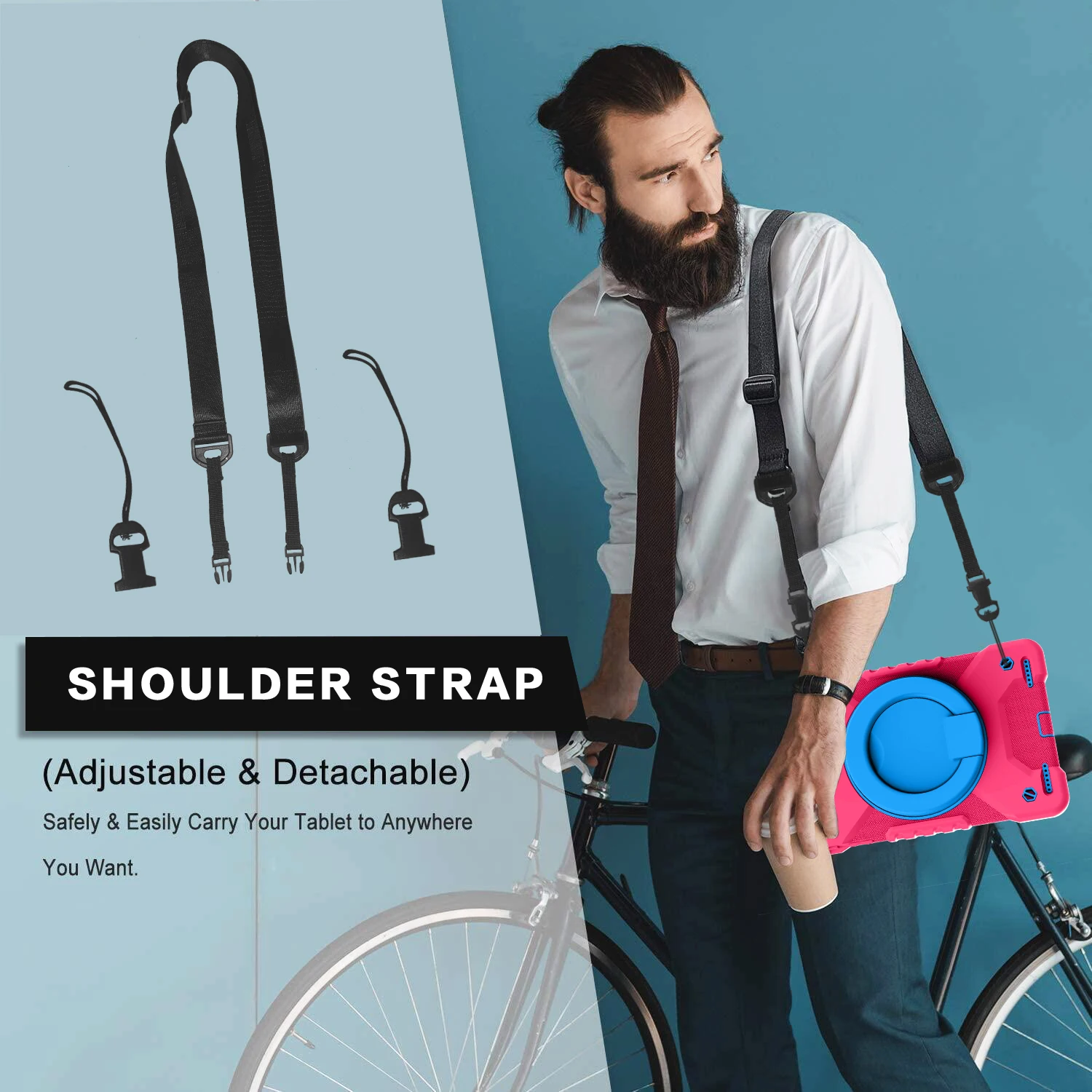 ❥[Съемный и регулируемый плечевой ремень] ударопрочный чехол с регулируемым и съемным плечевым ремнем, он может позволить вам или вашим детям легко носить с собой и повесить планшет, удобный для прогулок на открытом воздухе/путешествий или семейного использования, освободите руку и сделайте то, что хотите; Вы даже можете повесить его позади остальной части автомобильного сиденья для детей, смотрите видео.