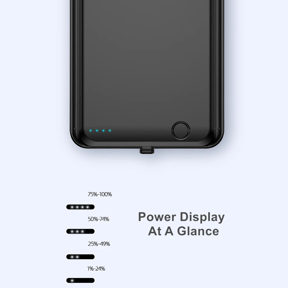 Простая установка светодиодный светодиодные индикаторы: мягкая верхняя часть облегчает установку. Скользящий телефон в чехол-плотно прижимая телефон к низу-долгим нажатием на кнопку назад в течение 3 секунд. Кроме того, вы можете нажать на задний индикатор в течение 3 секунд, чтобы проверить, сколько энергии осталось. (0%-25%-50%-75%-100%)