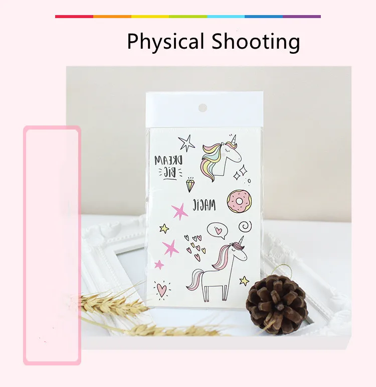 Милый Цвет дизайн с рисунком единорога, переводятся с помощью воды Водонепроницаемый Временная тату-наклейка для детей девушка Детский подарок поддельные татуировки