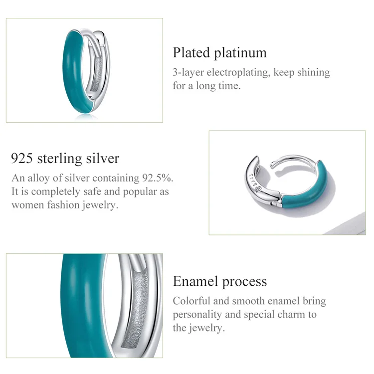 925 пробы серебряные серьги-гвоздики bamoer с эмалью, гипоаллергенн...