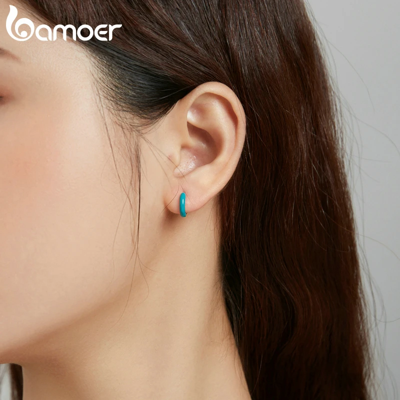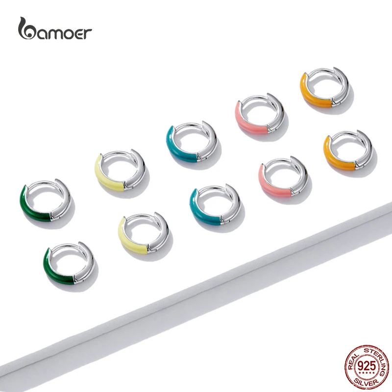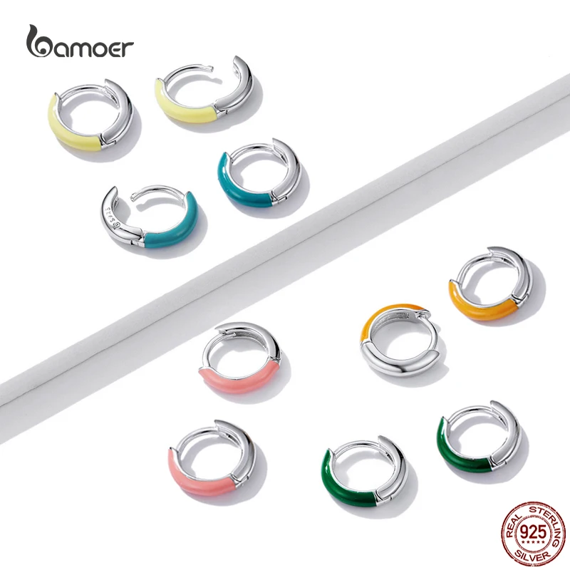 Bamoer, хит продаж, серьги-кольца с пряжкой, серьги из стерлингового серебра 925 пробы, цветные серьги для женщин, изящные свадебные серебряные украшения GAE488