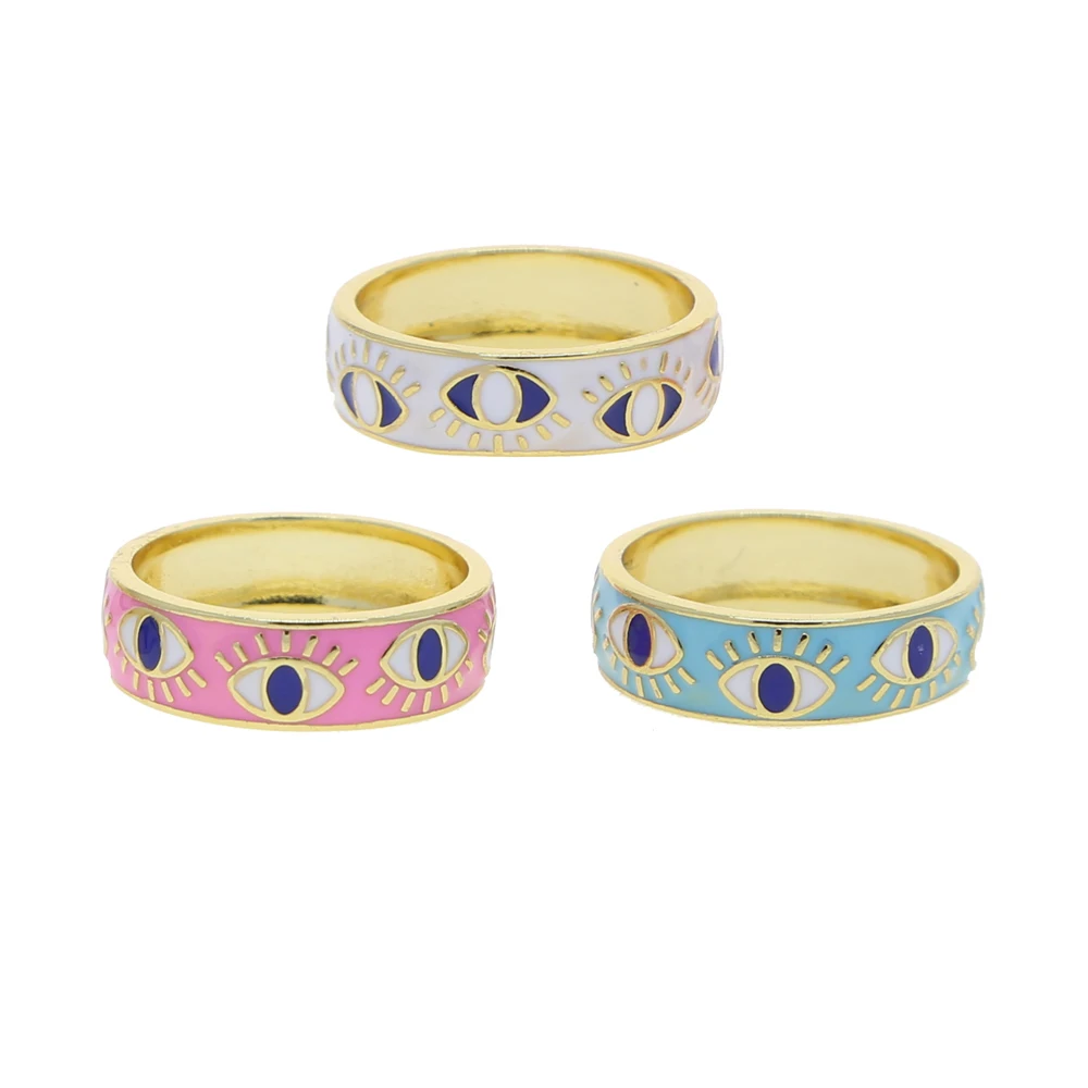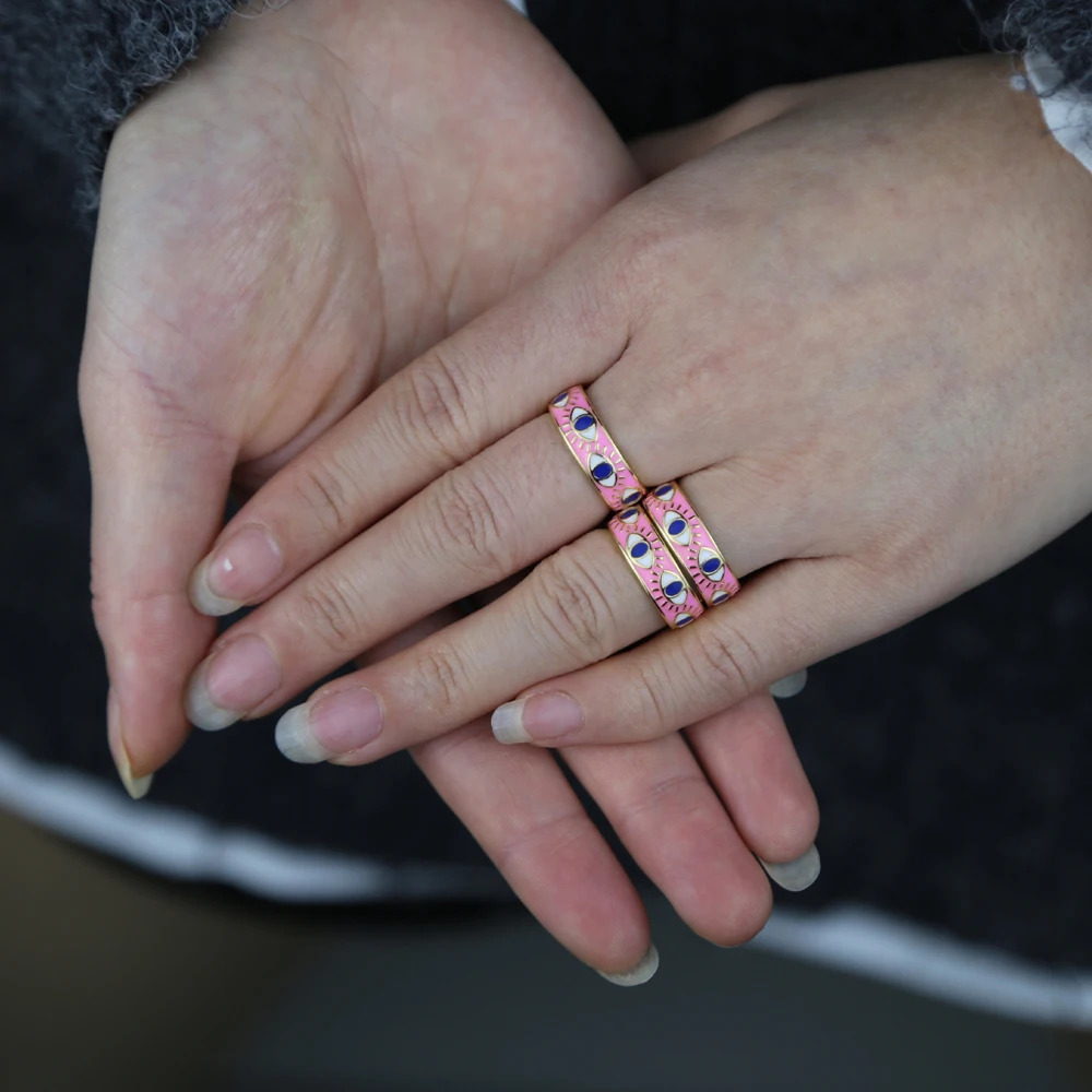 Прямая доставка, золотой цвет, Розовая эмаль, Турецкий Дурной глаз, женское кольцо на палец в стиле бохо, модные украшения на удачу, размер США 5, 6, 7, 8