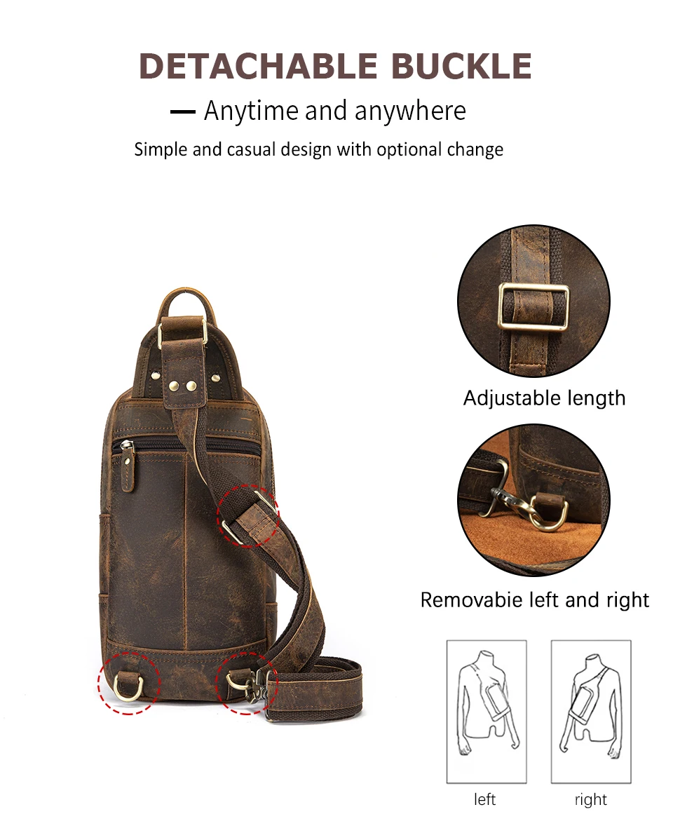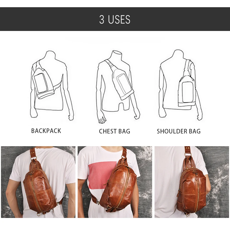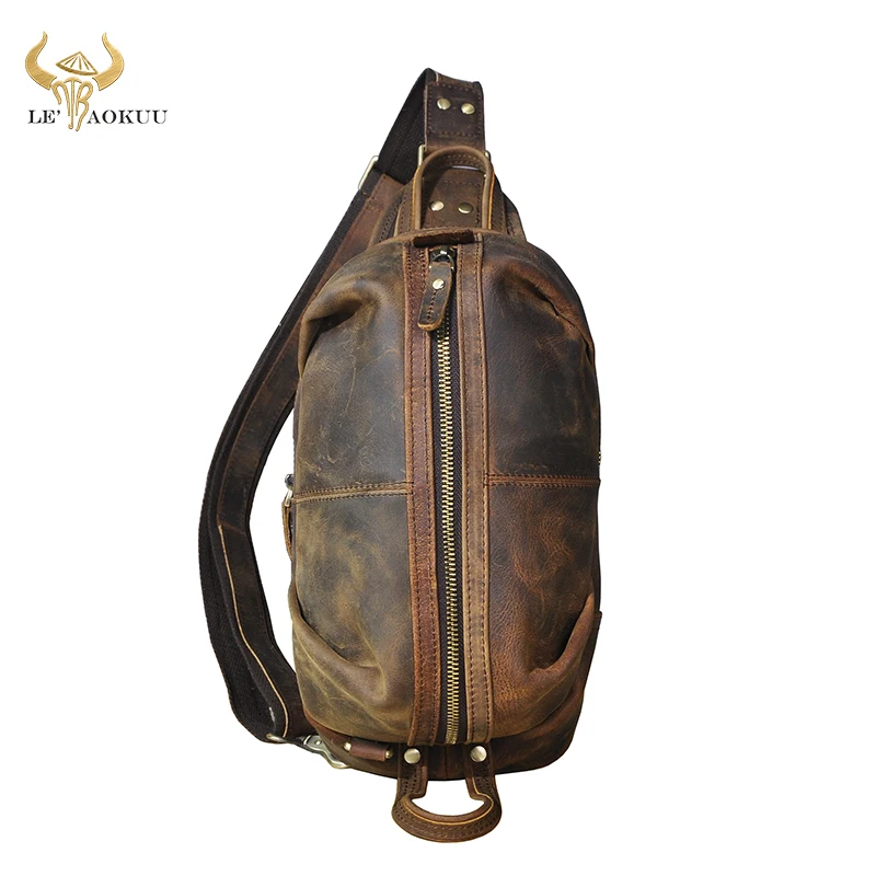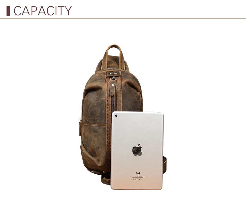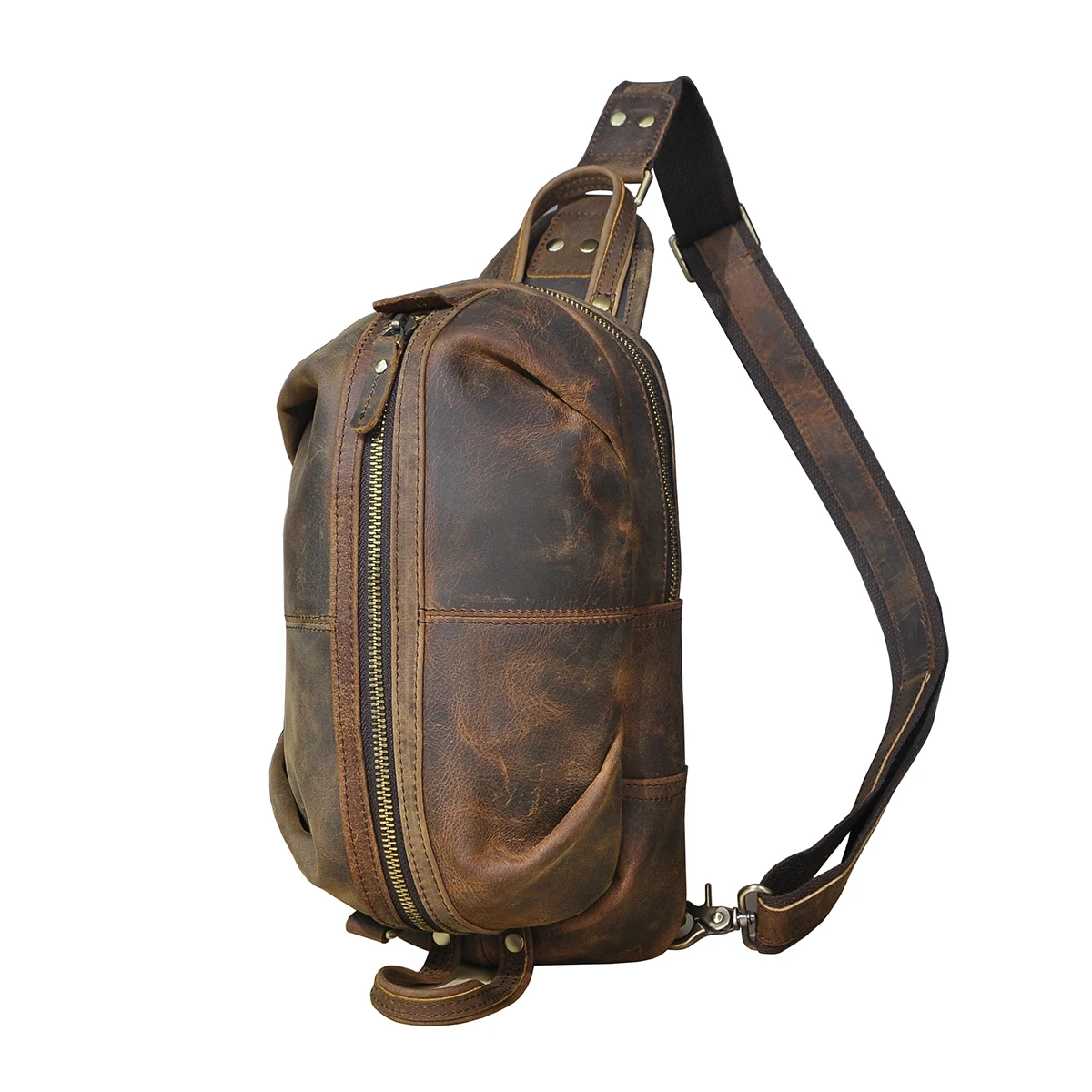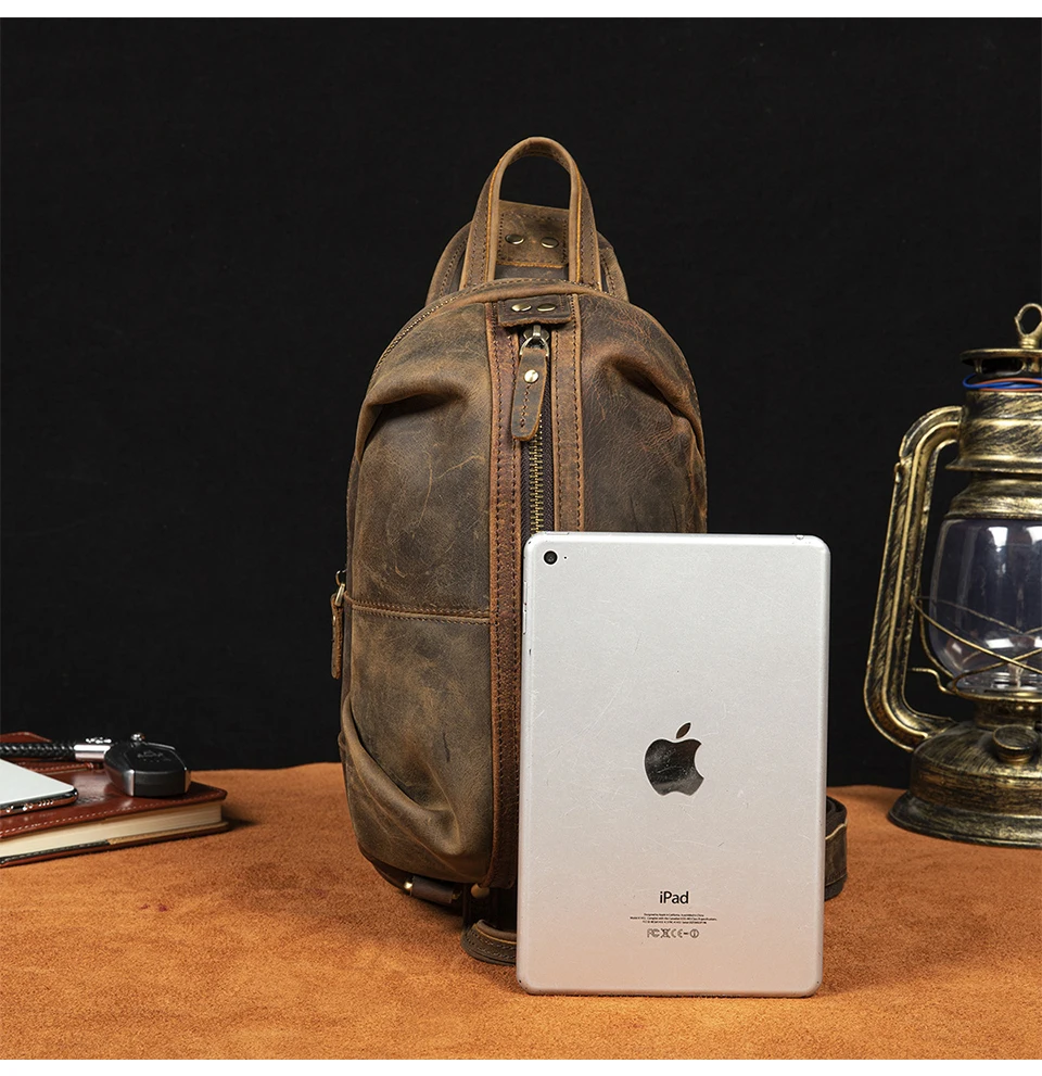 Сумка-слинг мужская, из плотной кожи Crazy Horse, винтажная, треугольная, для путешествий, 8-дюймовая, для планшета, на одно плечо, 1186